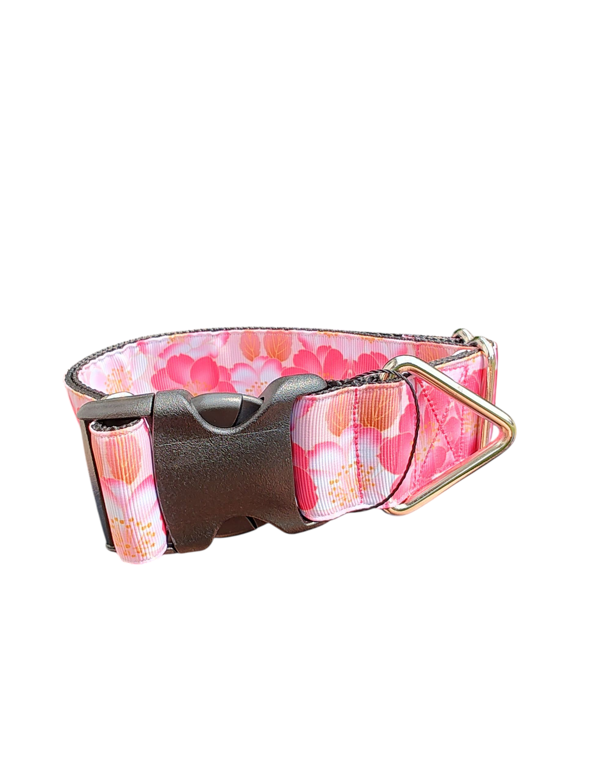 1.5" Wide Pink Flowers Nylon Dog Collar