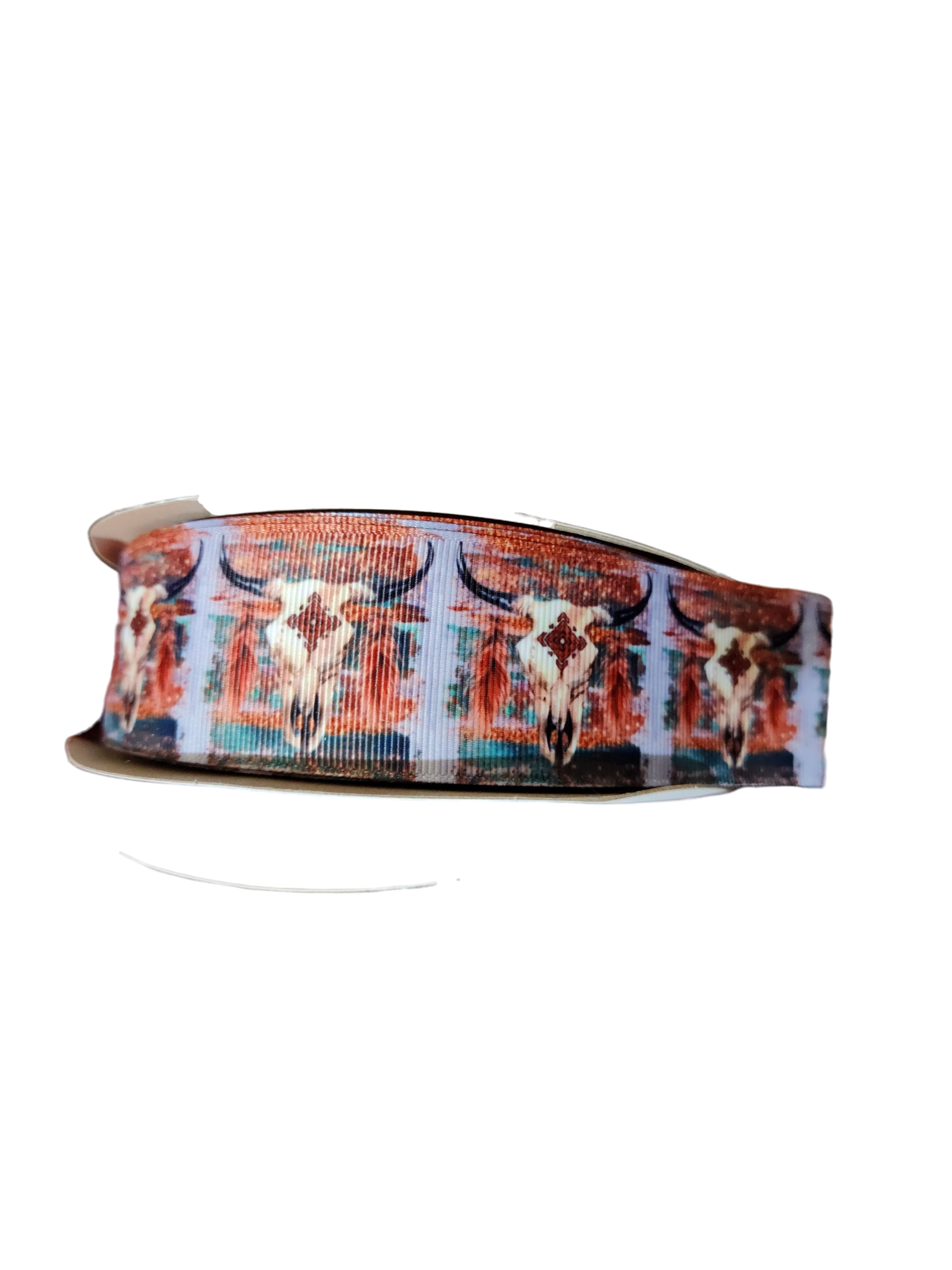 1.5" Wide Western Bull Skull Nylon Dog Collar