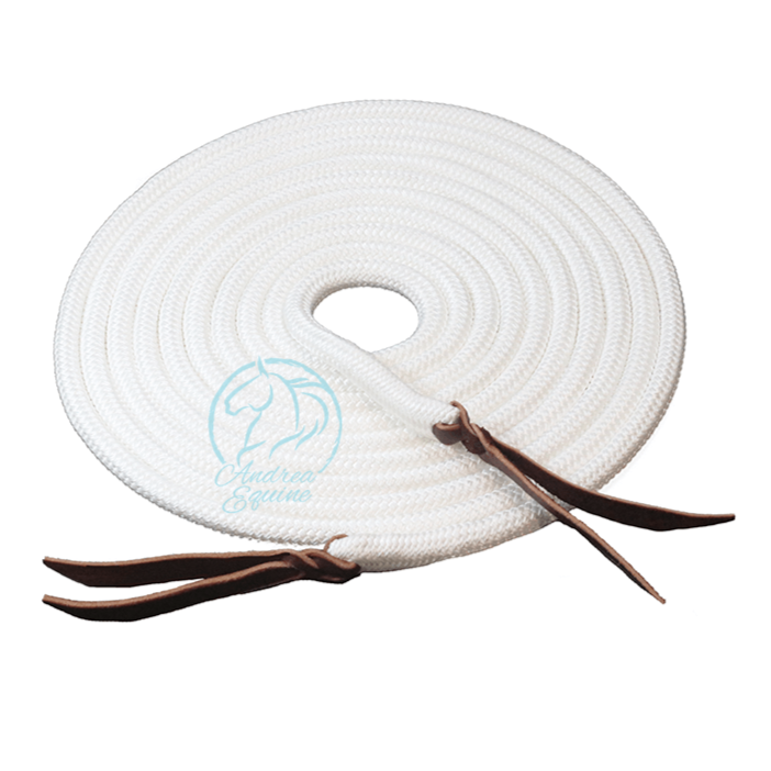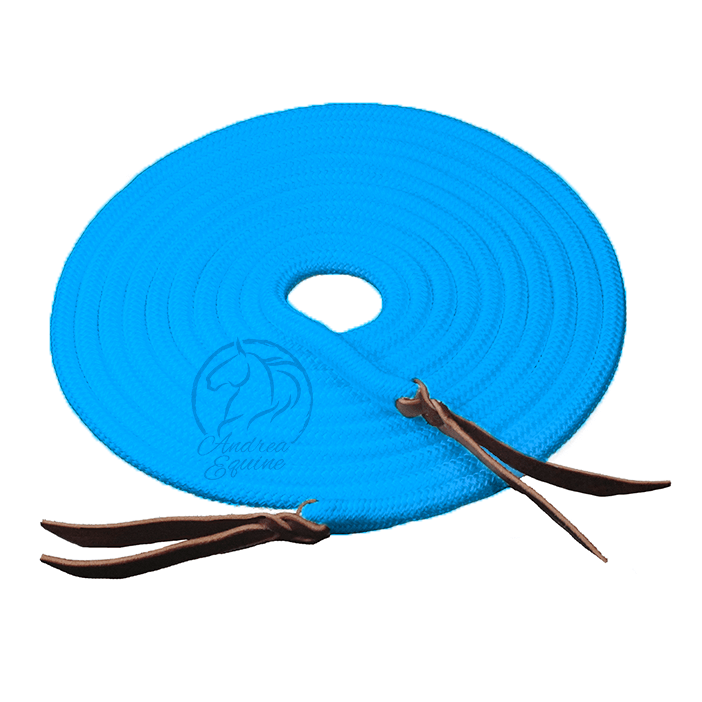 These 22 ft clinician mecate reins from Andrea Equine are the most versatile reins you can own! Clinicians love them because they serve as easy to adjust closed loop reins and feature a long end that can be used to lead, tie, and work a horse from the ground. It also serves as a connected spanker or whip for the lazier and cold blooded horse. These Andrea Equine reins are made from the same yacht rope as our leads and provide energy and feel like no other.