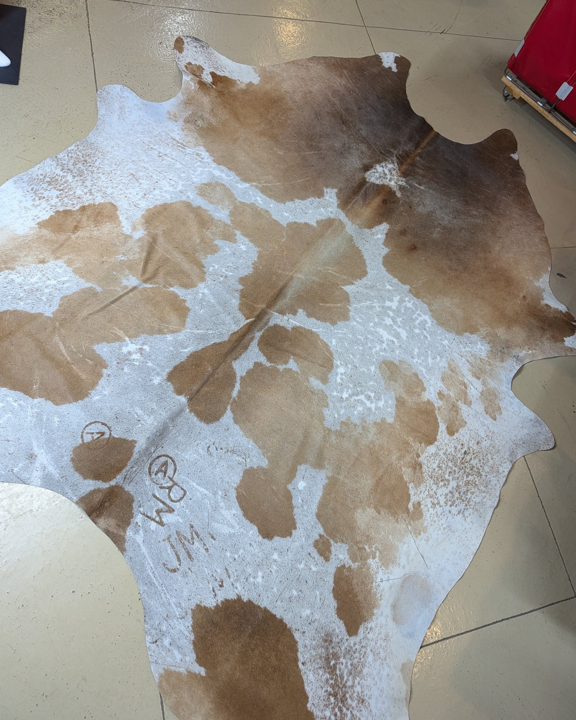 GORGEOUS blonde and grey spotted hide! Features 3 different brands that truly make her unique. Her measurements are 104 x 97 x 79. Annie is guaranteed to add loads of character to any room.
