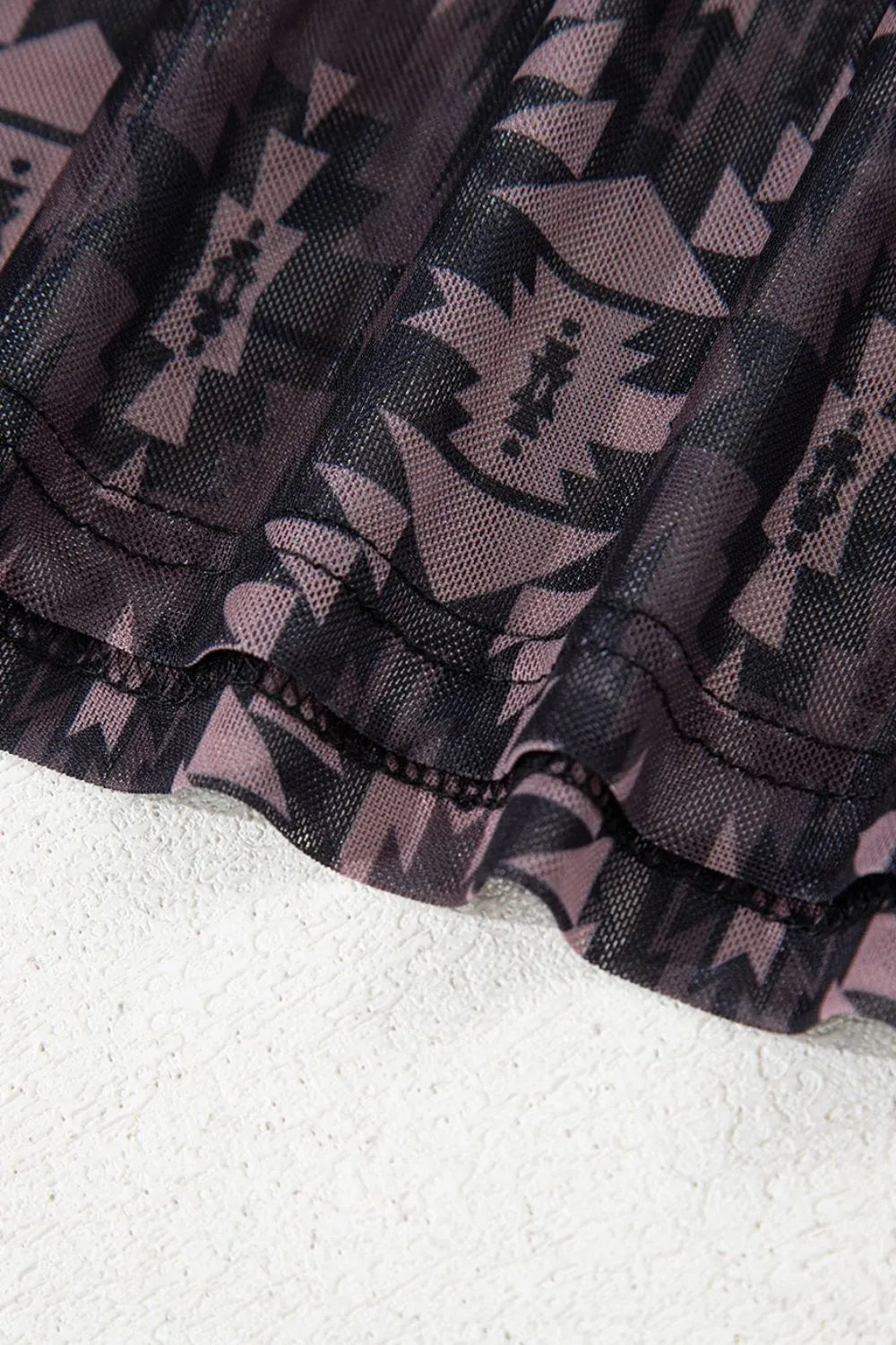 Aztec Print Mock Neck Short Sleeve Mesh T Shirt