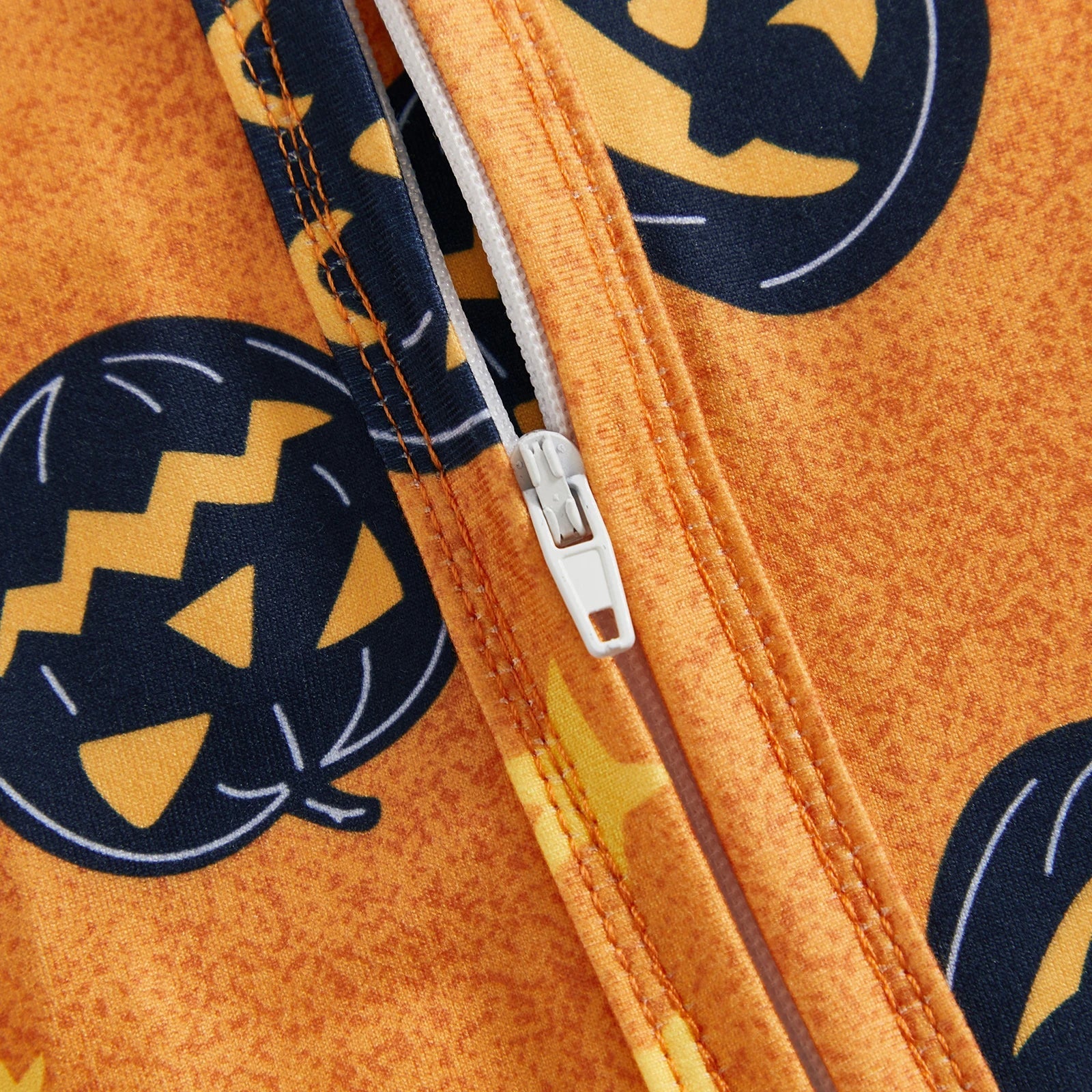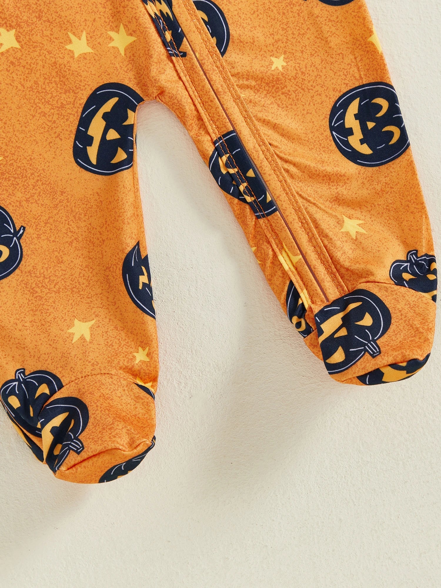 Baby Boy Girl 2Pcs Halloween Footed Zipper Romper Pumpkin Print Long Sleeve Round Neck Zip Jumpsuit with Hat Set