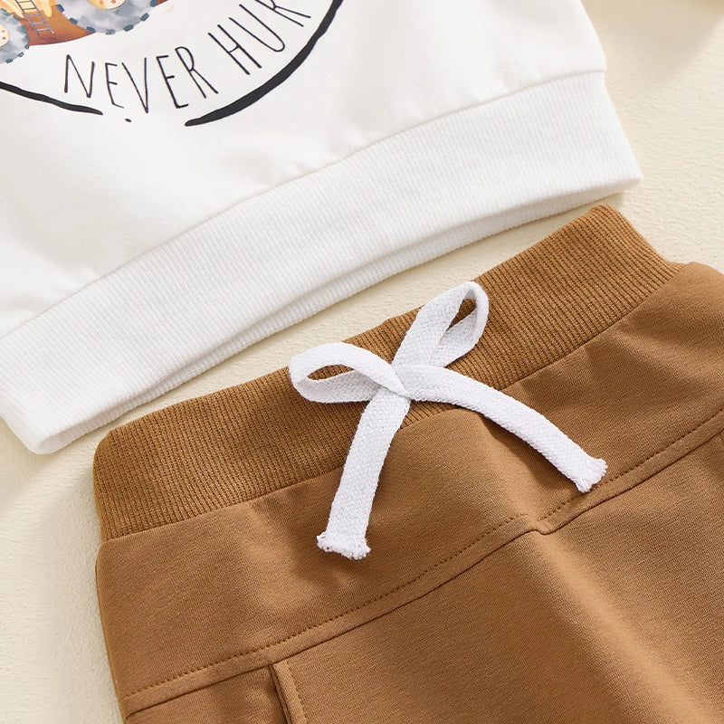 Baby Toddler Boys 2Pcs Fall Outfit A Little Dirt Never Hurt / Farmers Keep America Growing Letter Tractor Print Long Sleeve Top and Long Pants Set