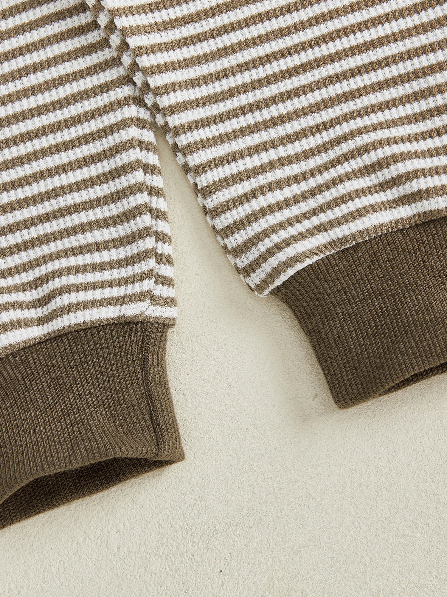 Baby Toddler Boys 2Pcs Fall Outfit Rugby Embroidery Striped Long Sleeve Top and Elastic Pants Clothes Set