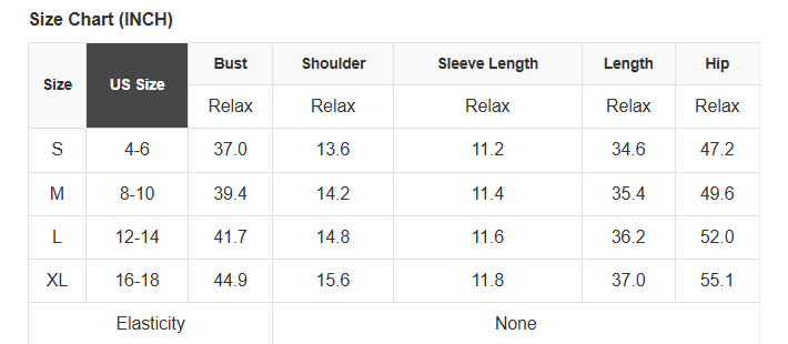 Size Info: See size chart for approximate measurements