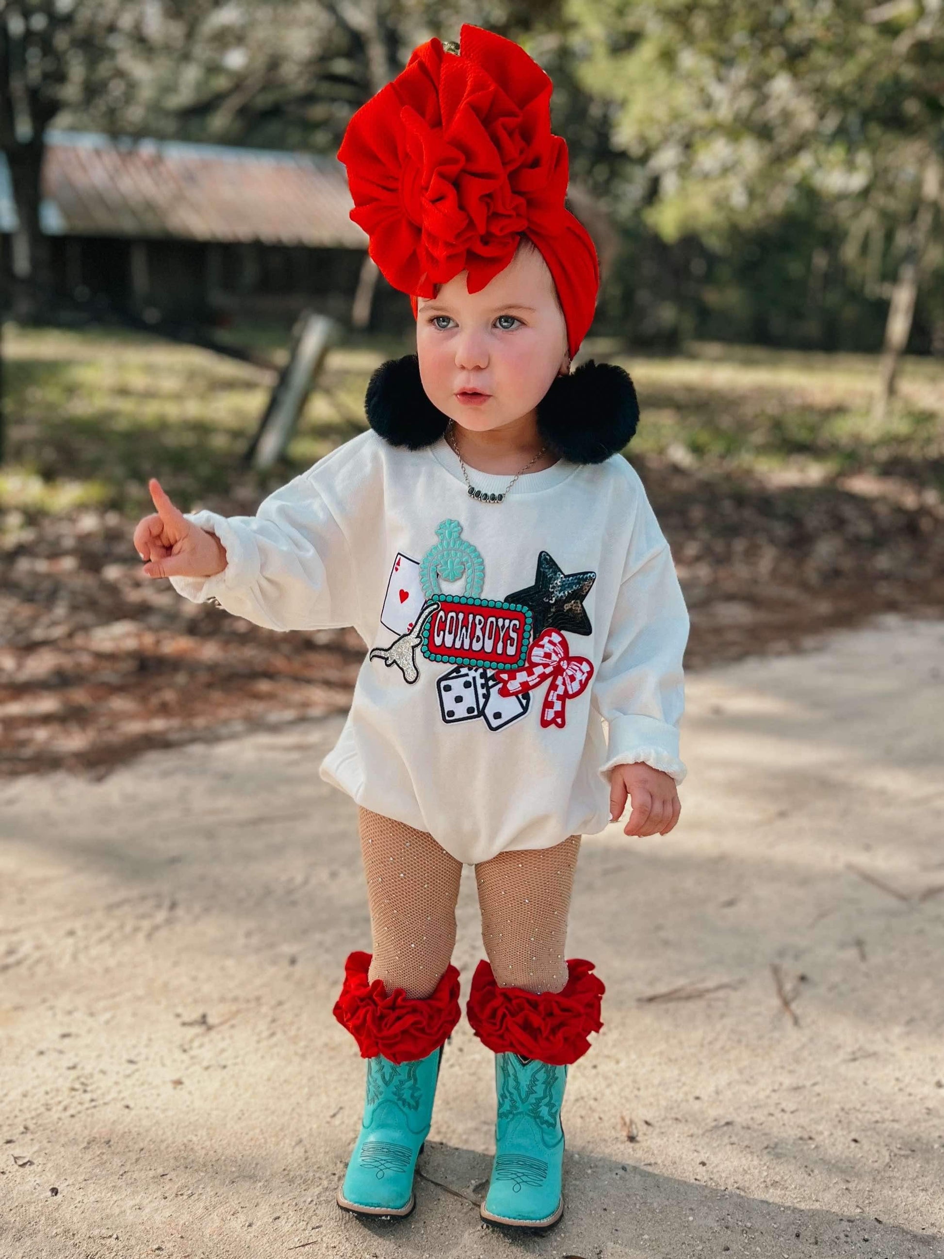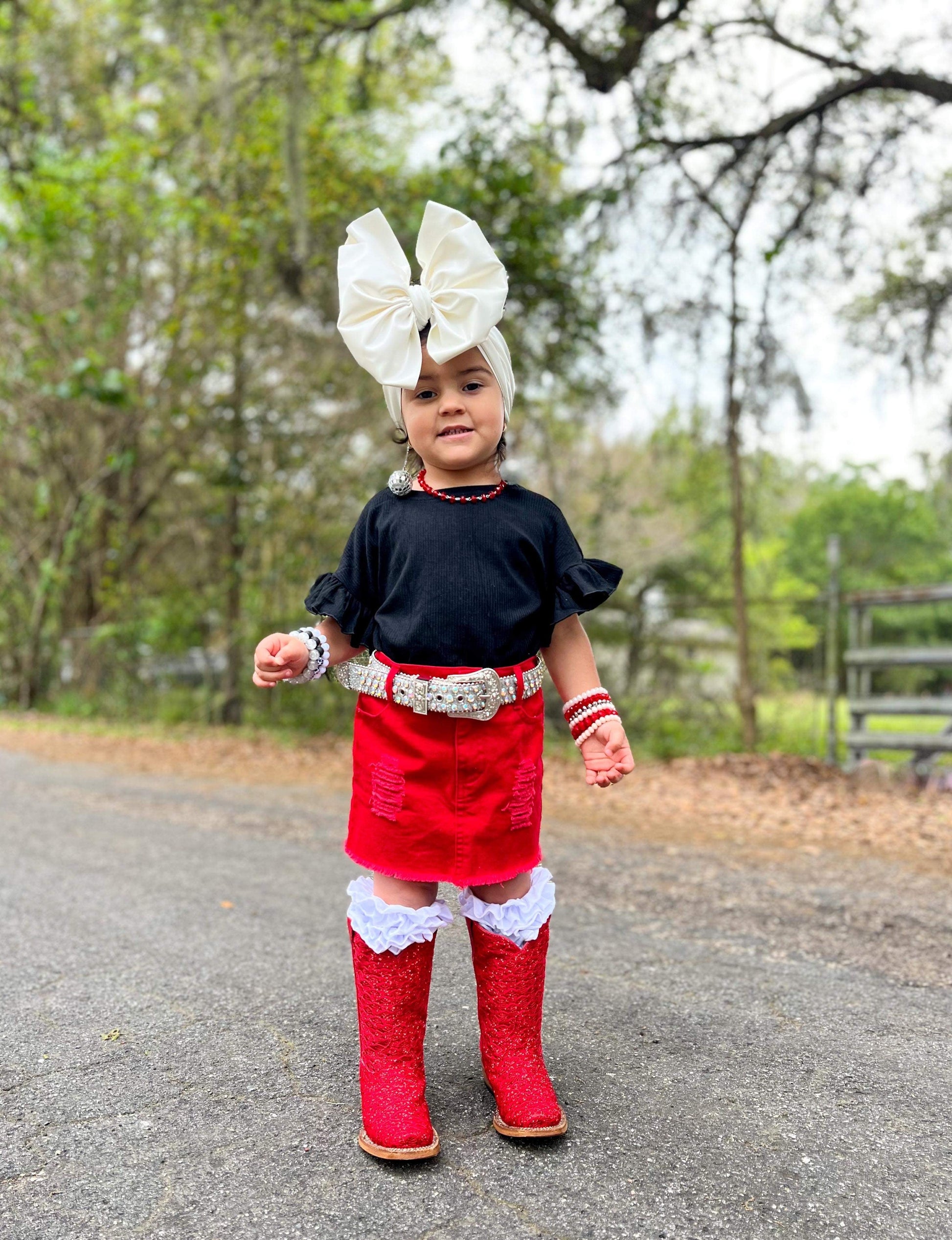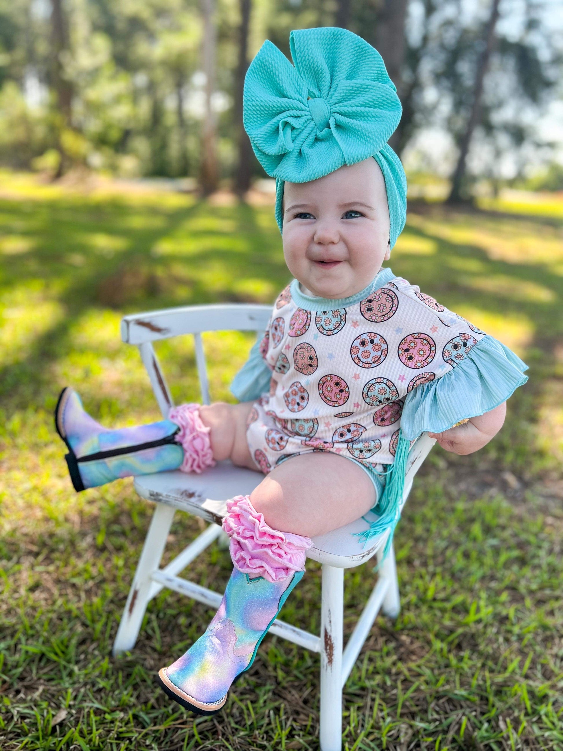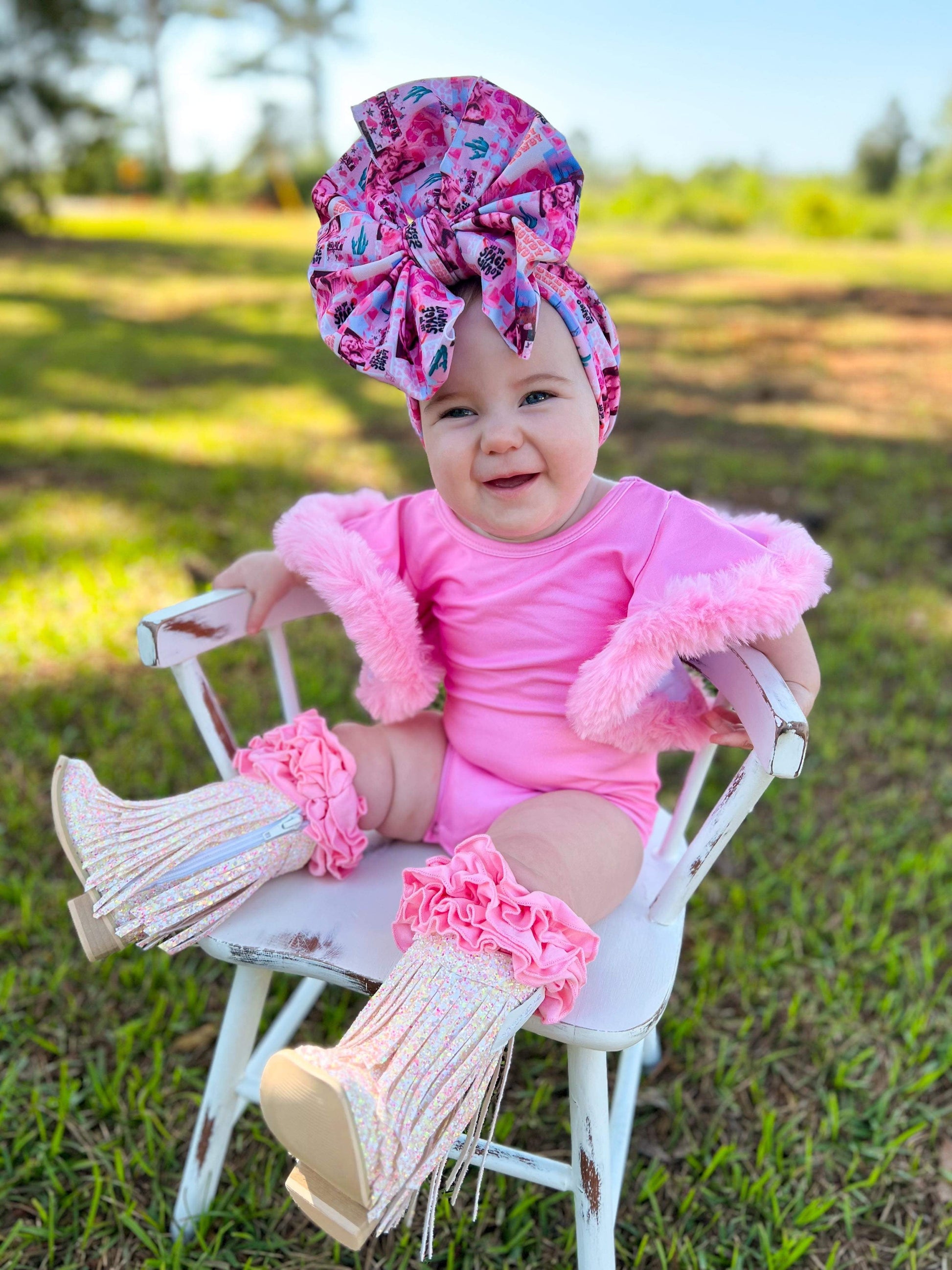 Sizes are approximate. Circumference is measured at the base of the ruffle. Length is the length from tip of toe to top of ruffle.