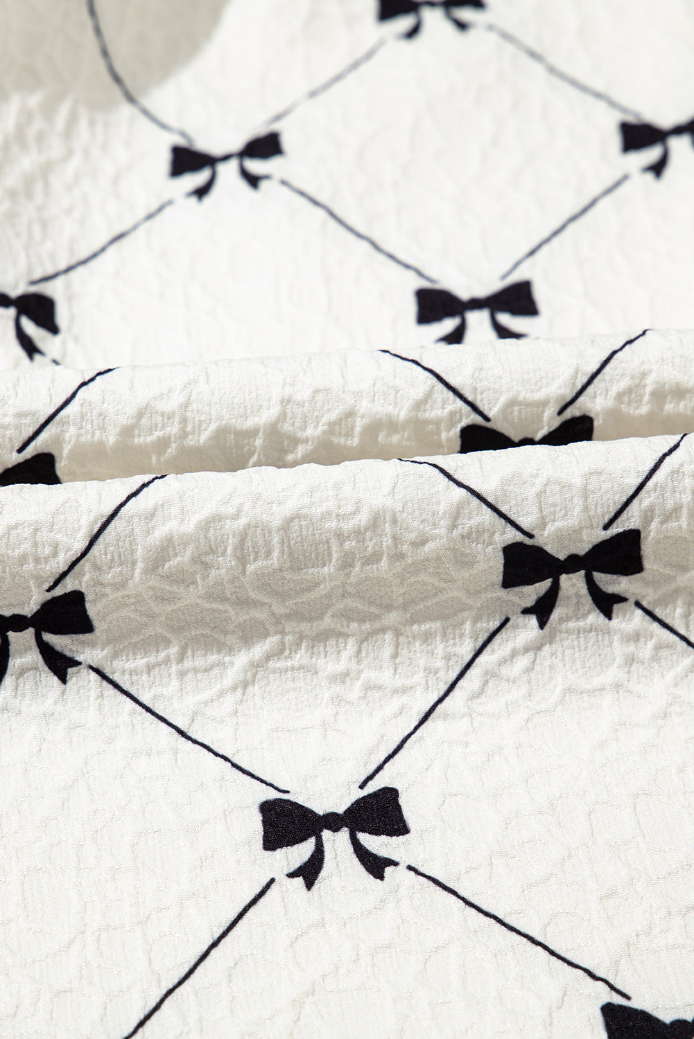 Bow Textured Puff Sleeve Mini Dress