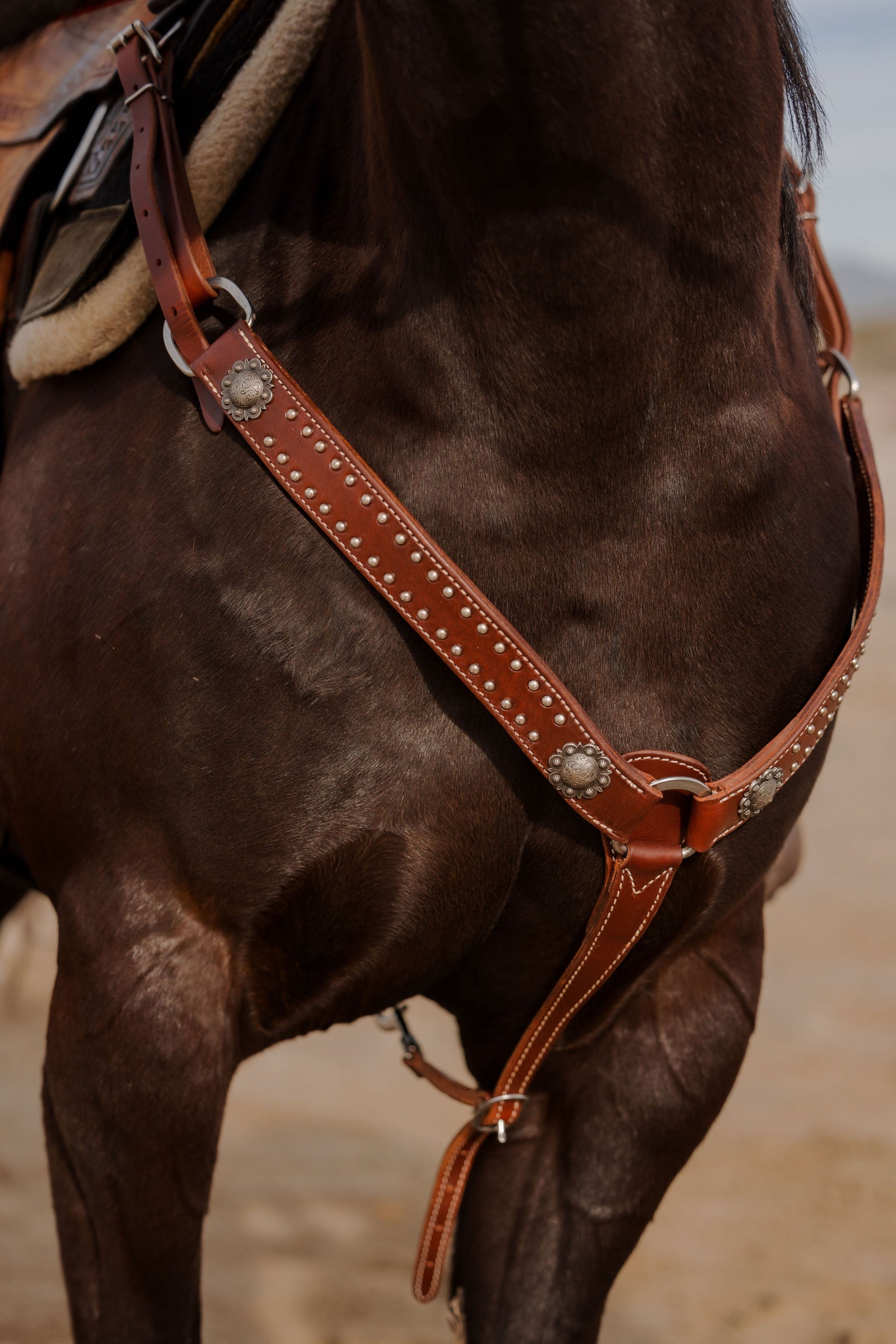 • "California" Dotted Chocolate Harness Breast Collar – Built to last, with just enough silver detail to stand out.