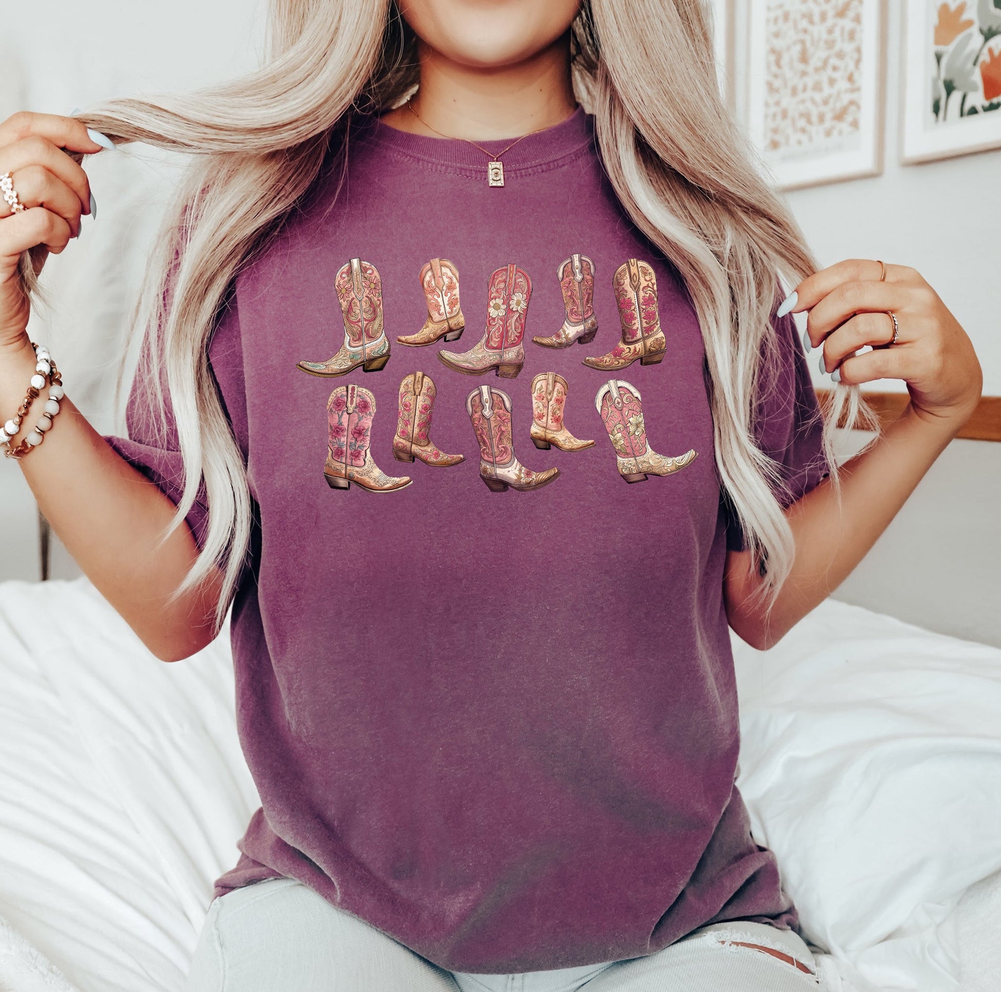 Colorful Pink Cowboy Boots, Western, Cowgirl, Country, Tshirt Comfort Colors T-Shirt