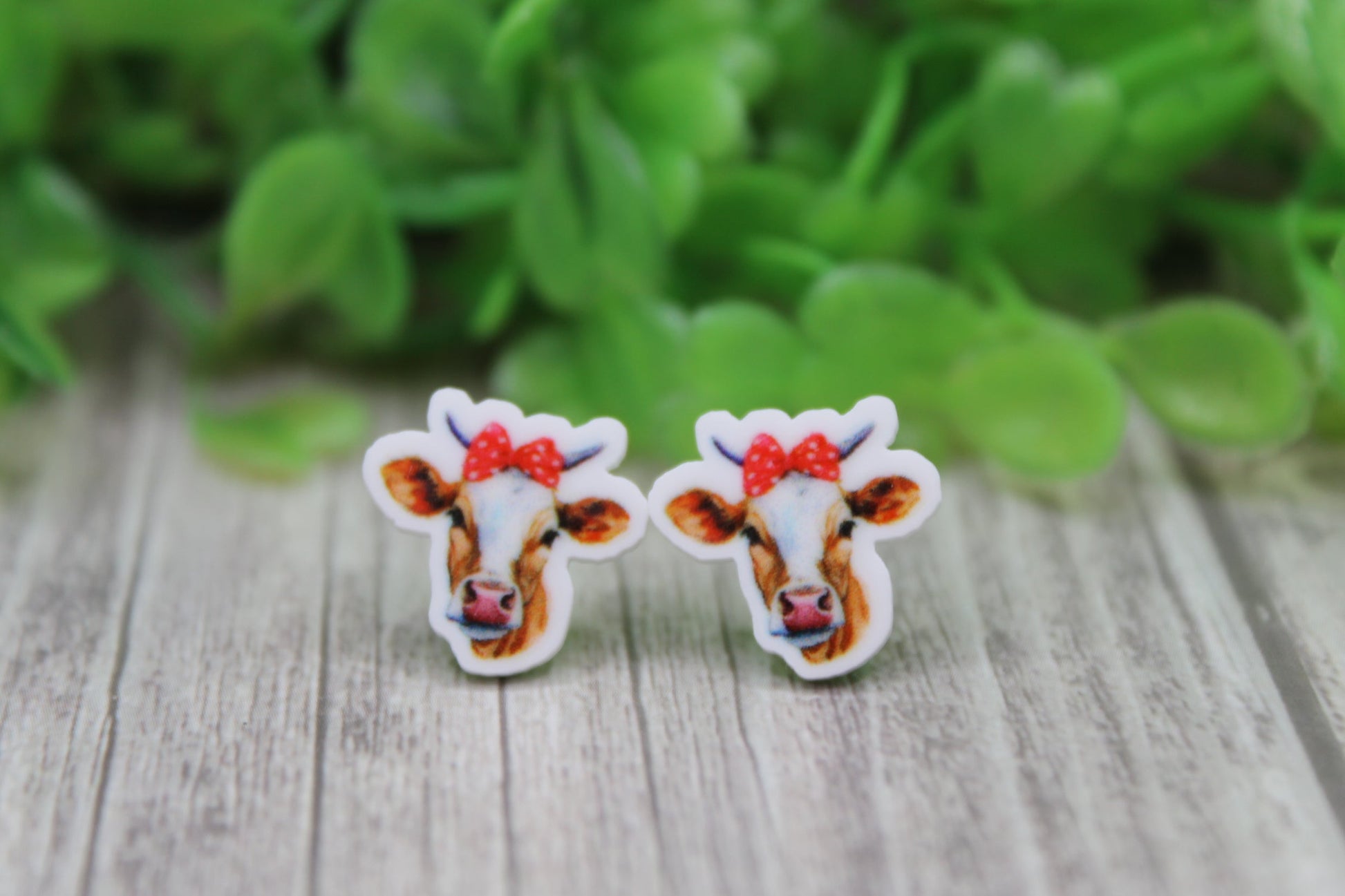 Cows with Red Headbands Stud Earrings