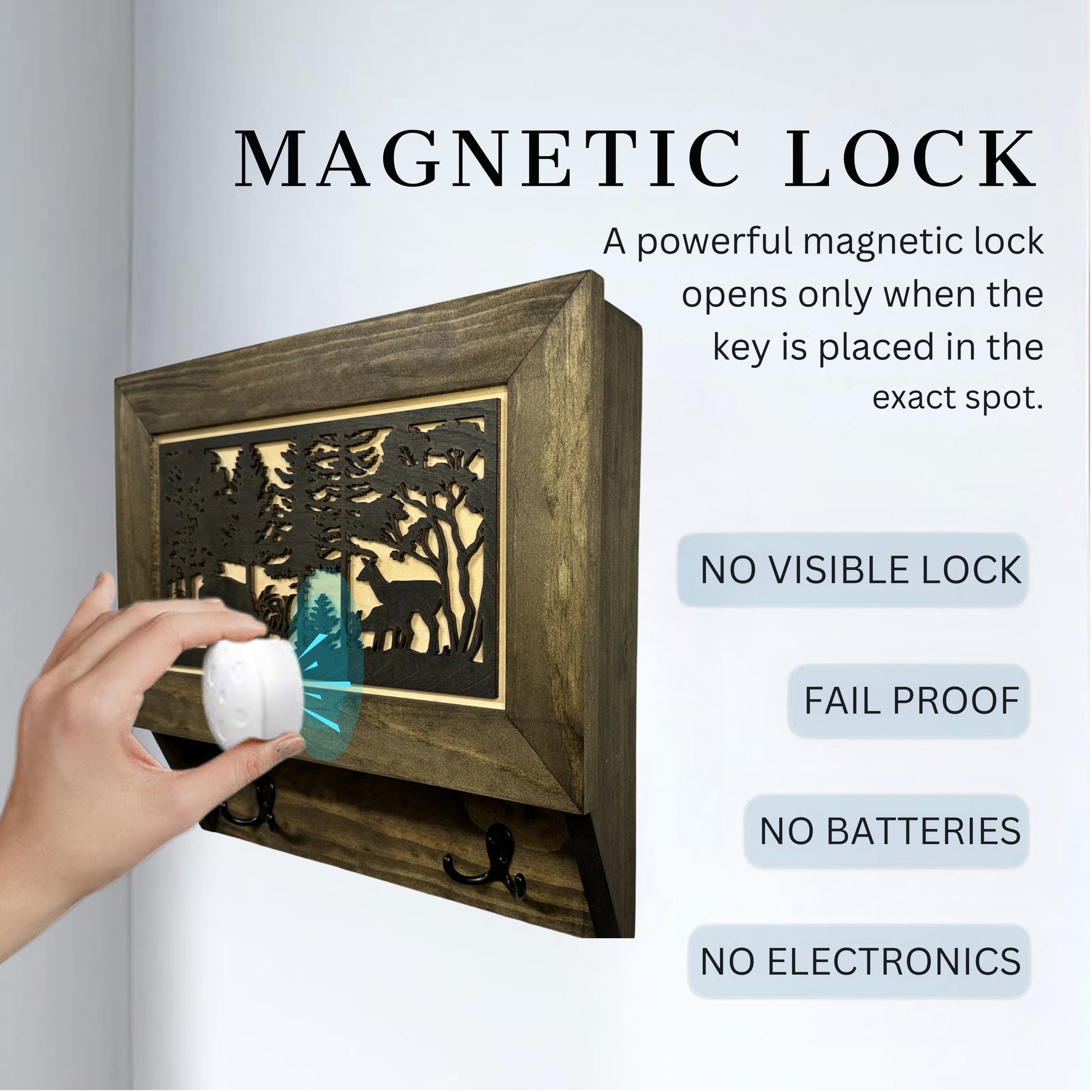 - Innovative magnetic lock keeps your items secure from unintended hands yet quickly accessible. No batteries and no electronics so your magnetic lock will always work when needed.