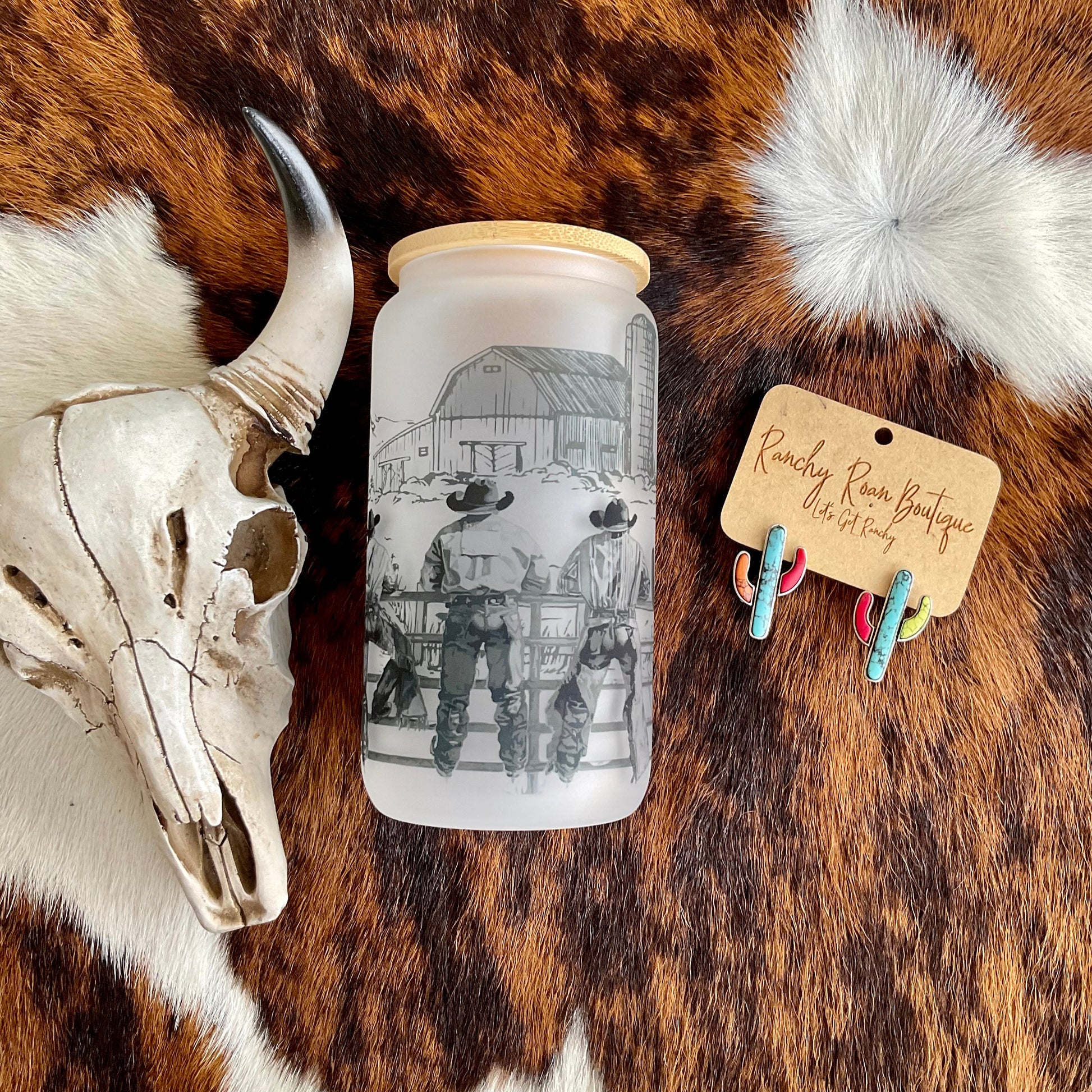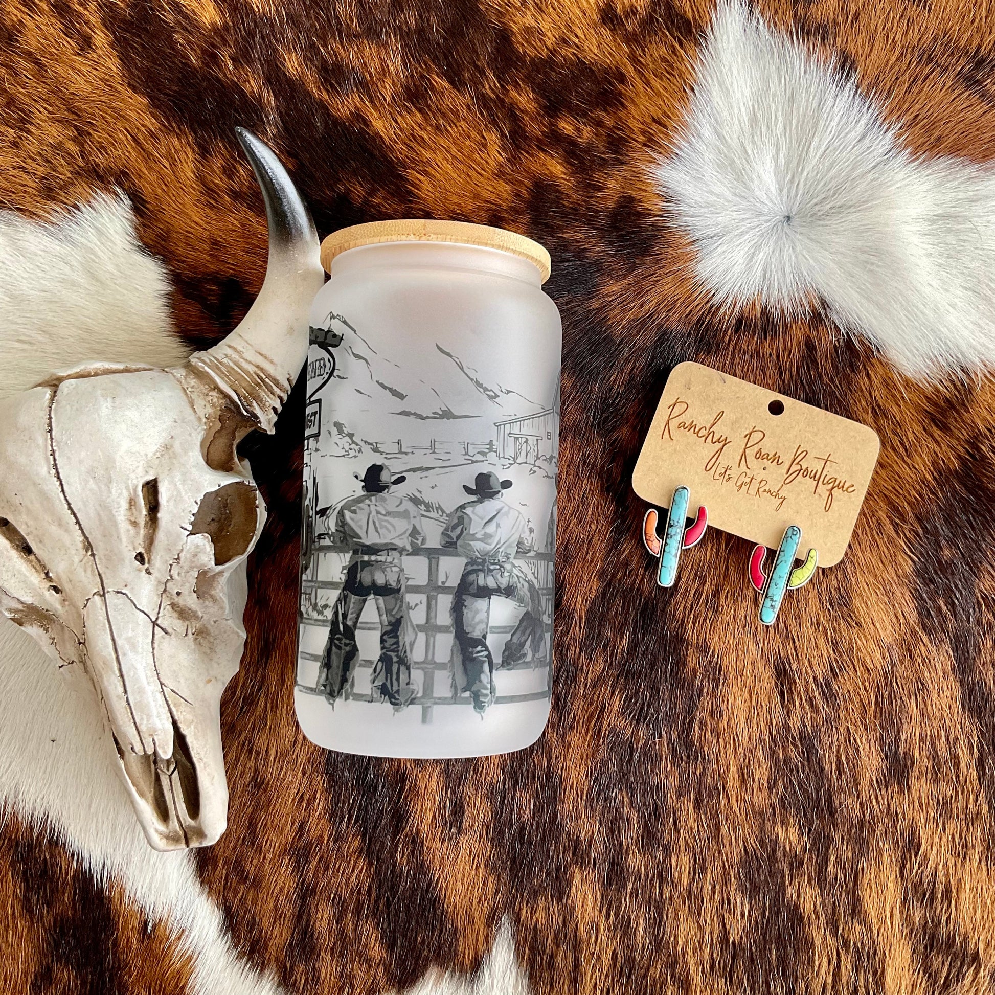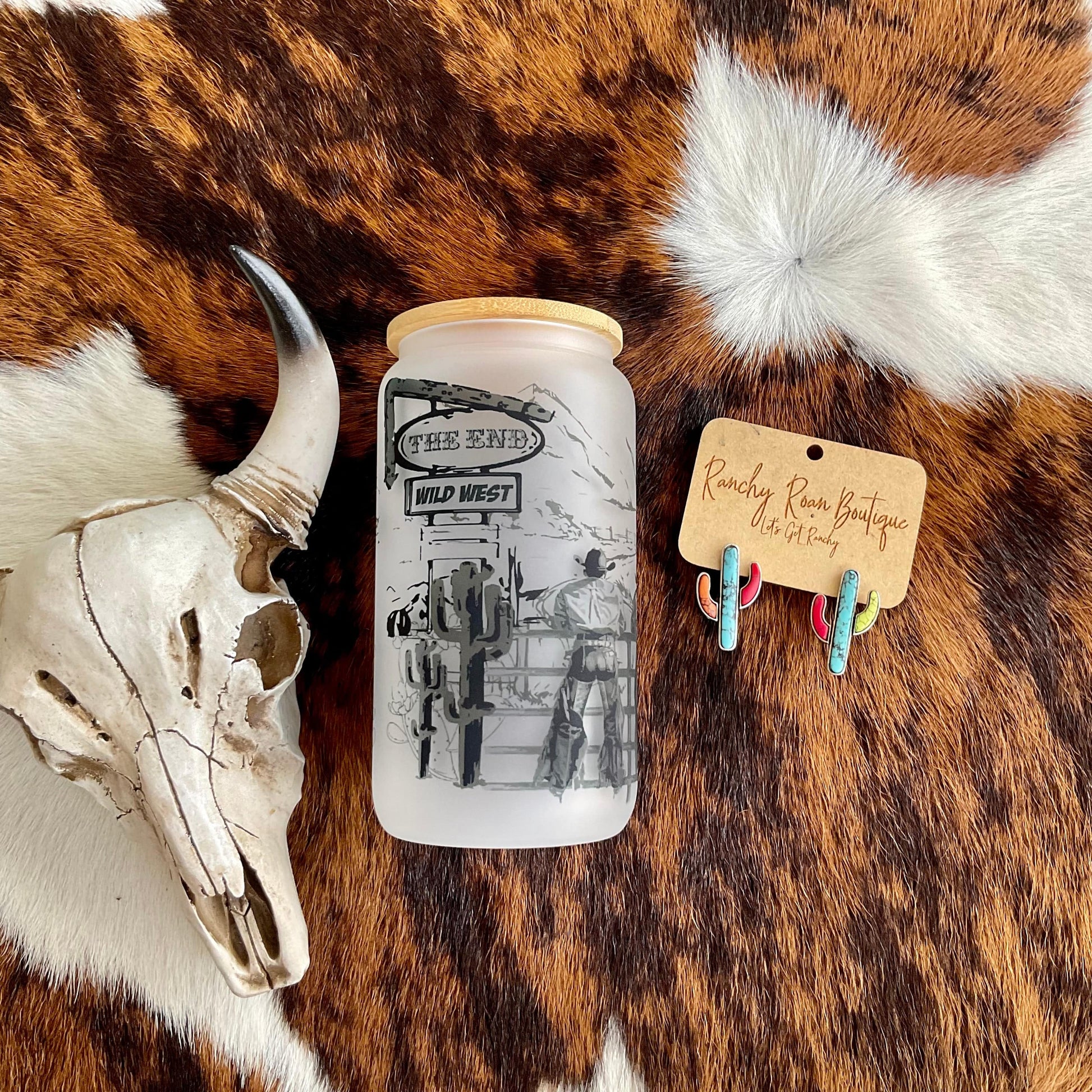 End of the West Frosted Glass 16 oz Western Tumbler