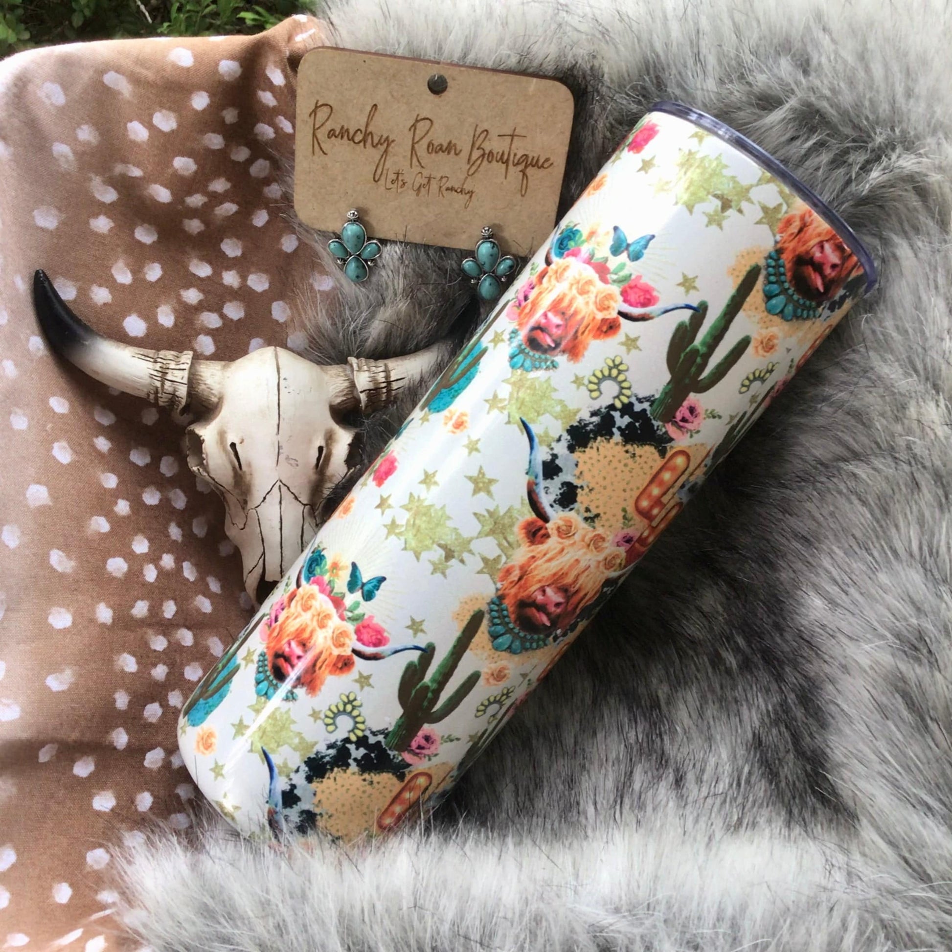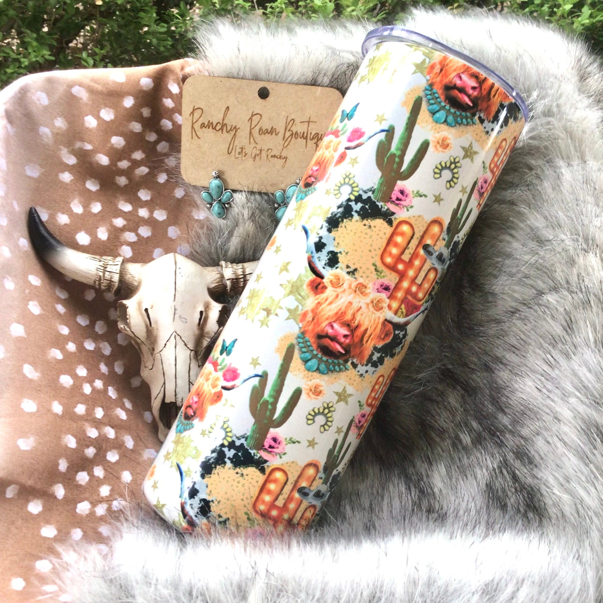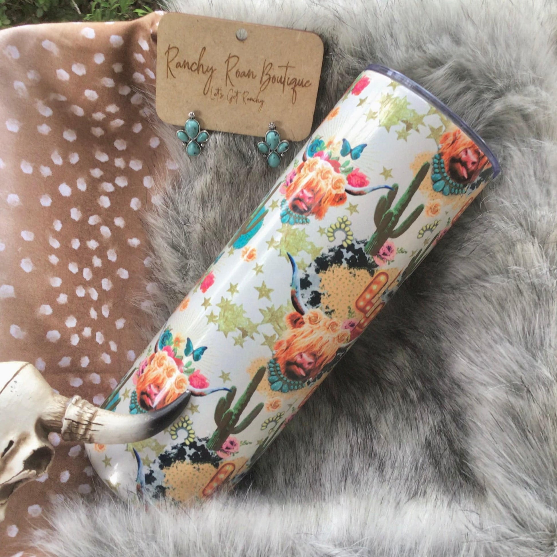 Fancy Highland Cow Western Shimmer 20oz Skinny Tumbler