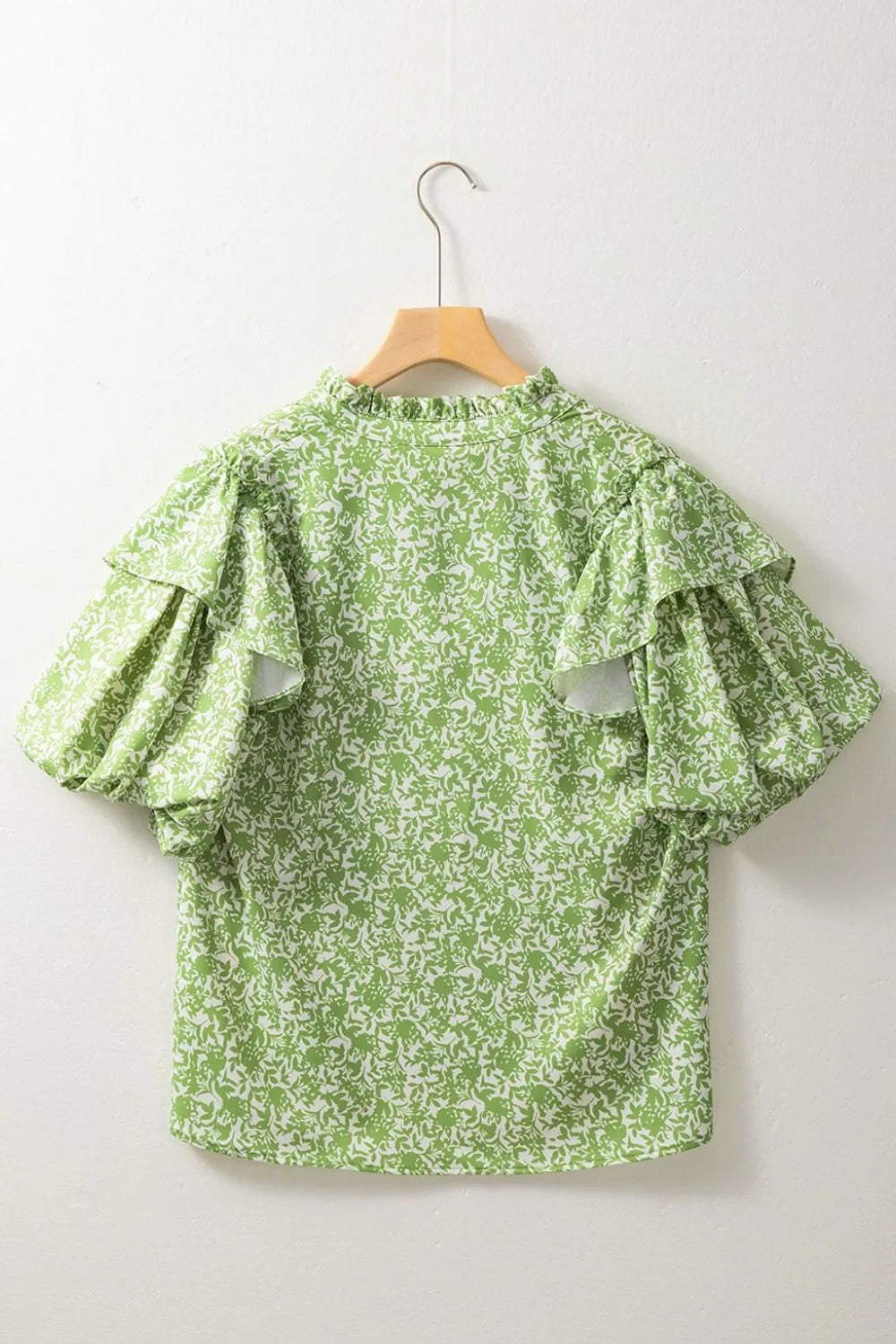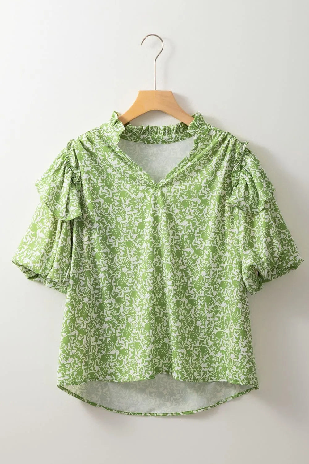 Floral Ruffle Puff Short Sleeve Frilled Notched Blouse