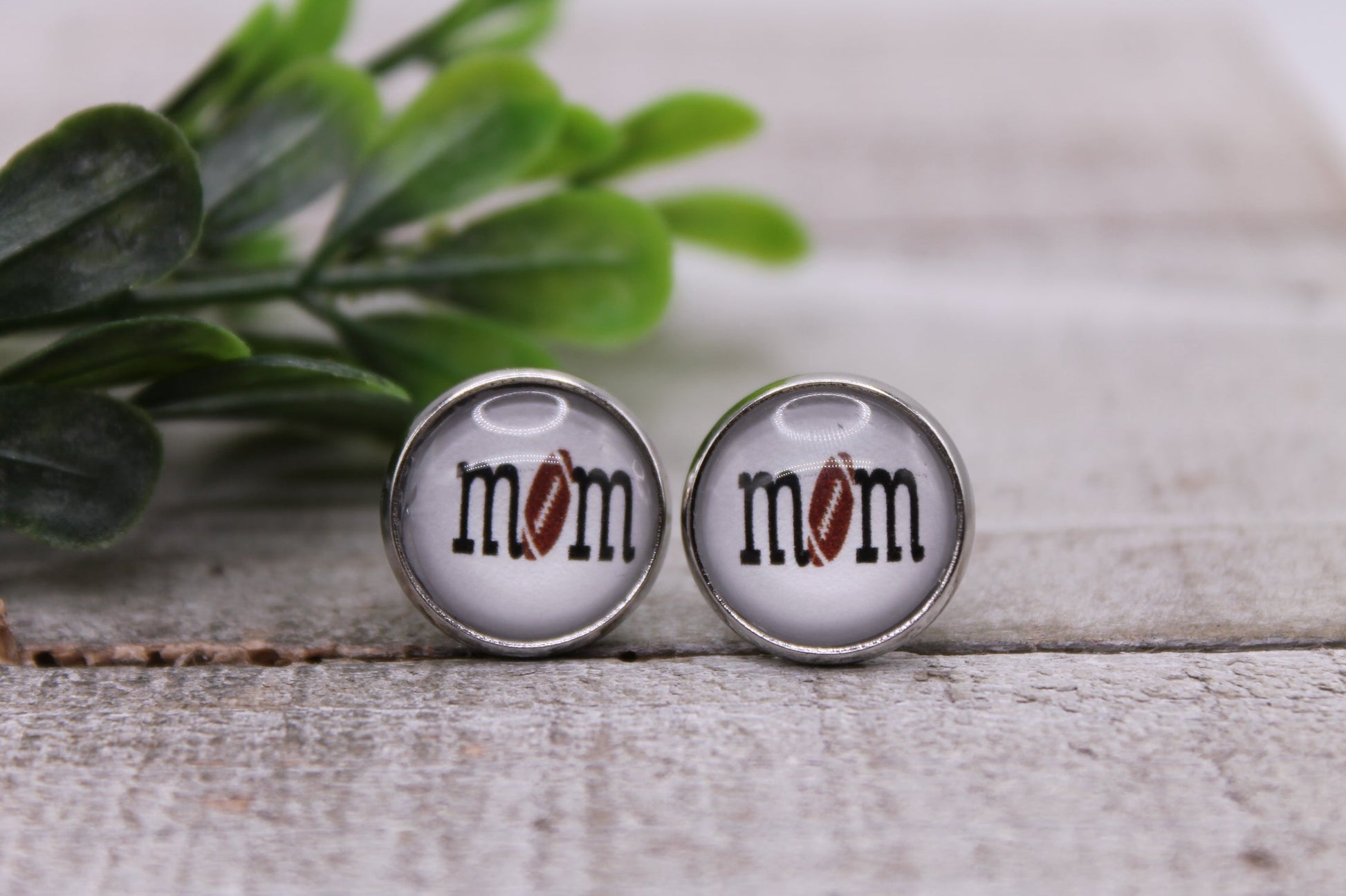 Football Mom || 12mm Glass Stud Earrings || Hypoallergenic