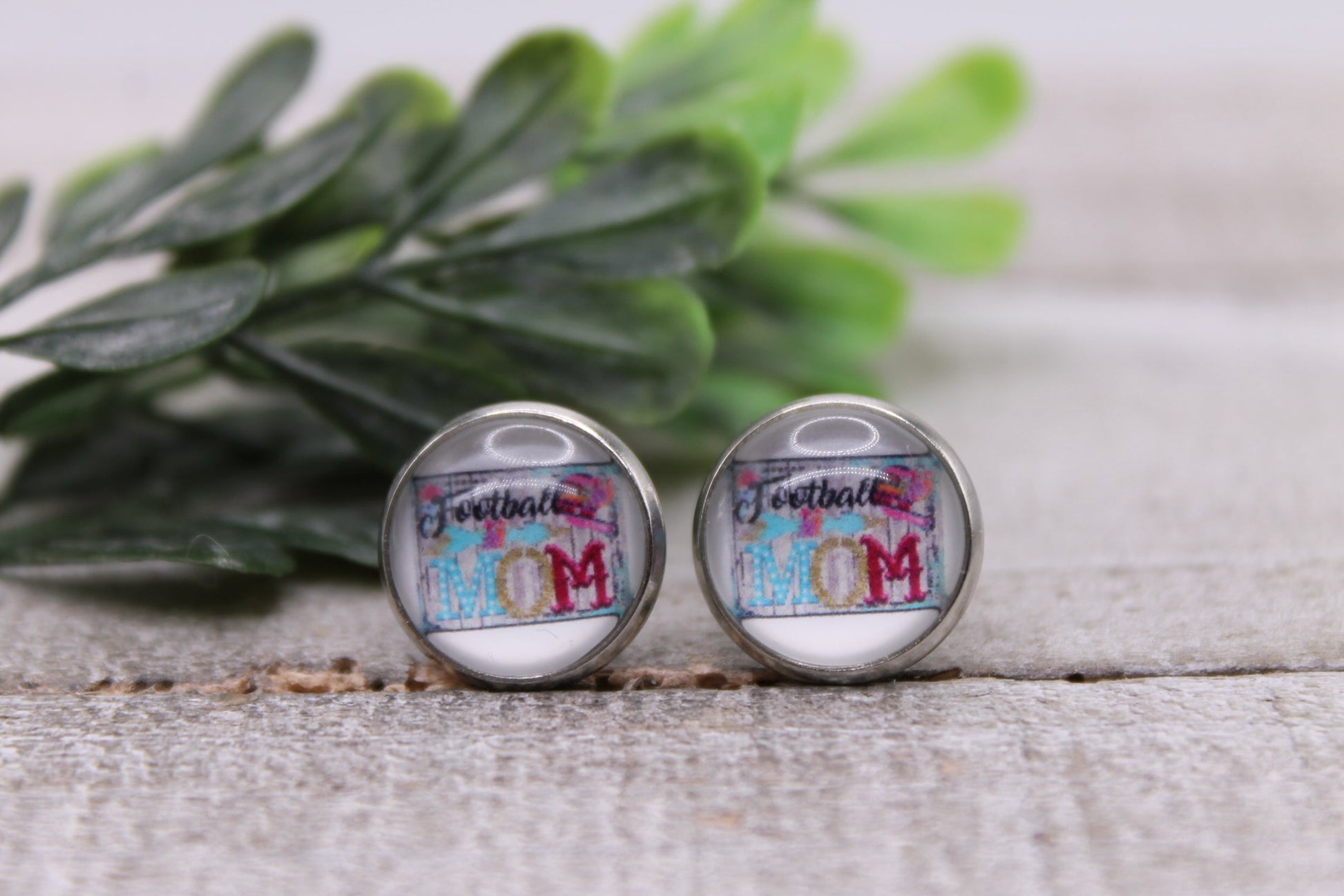 Football Mom - Block || 12mm Glass Stud Earrings || Hypoallergenic