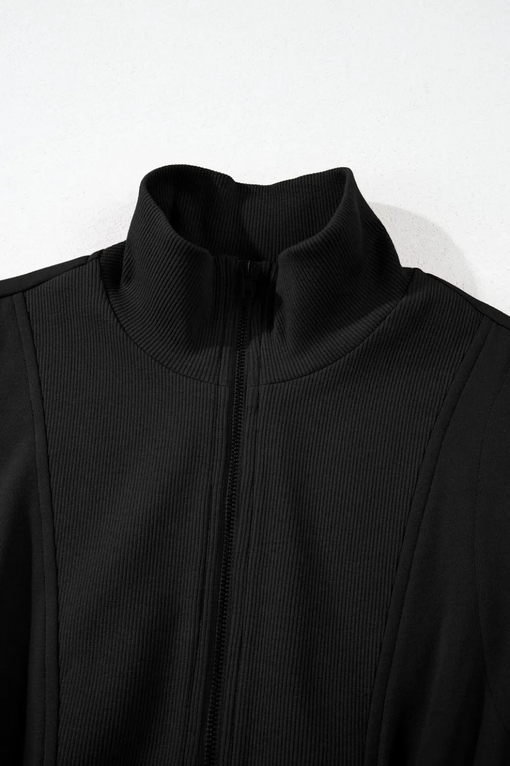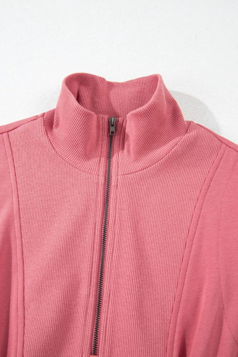French Terry Zipped Collar Sleeveless Drawstring Waist Mini Dress