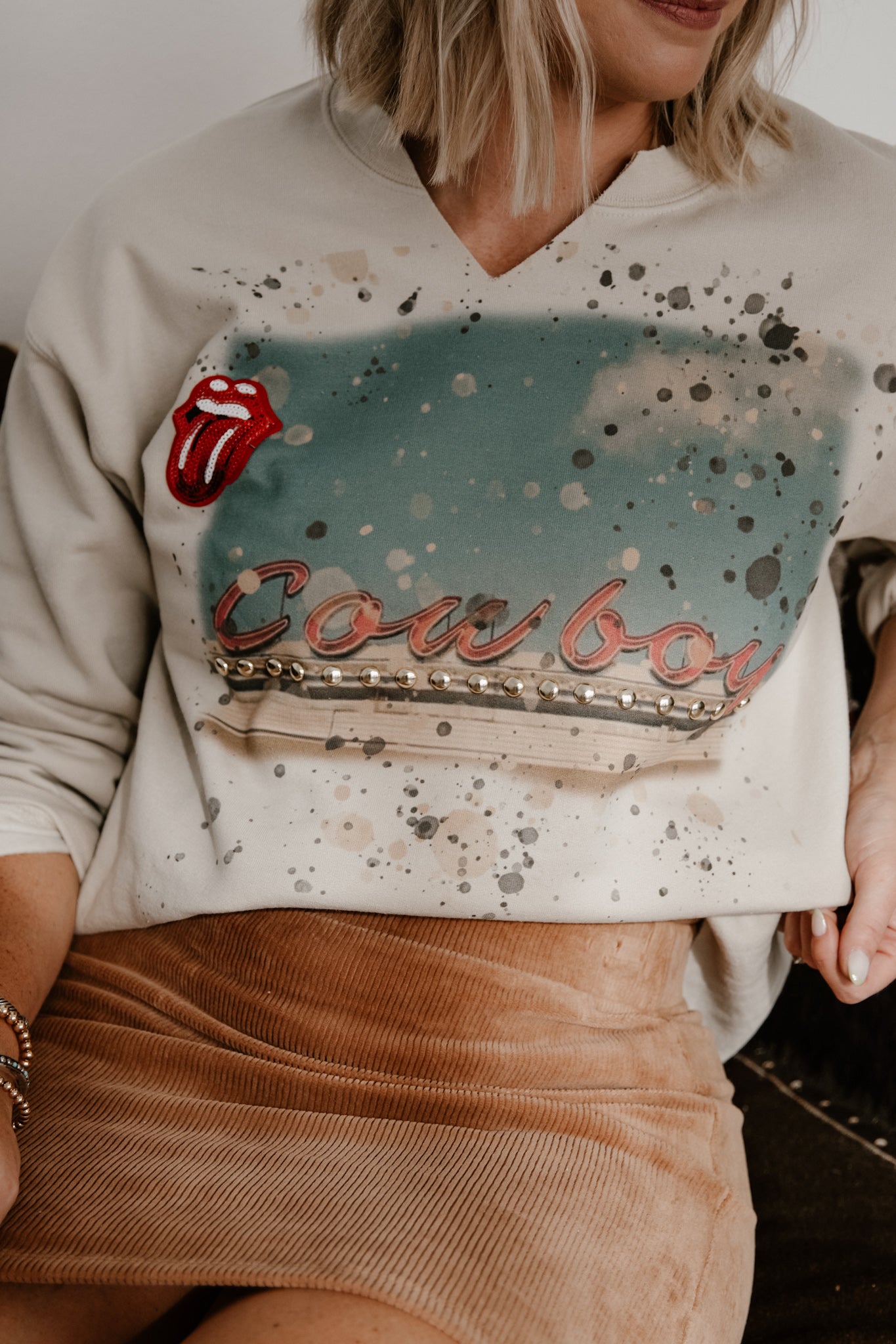 GINA PINK LABEL COWBOY NEON CREWNECK