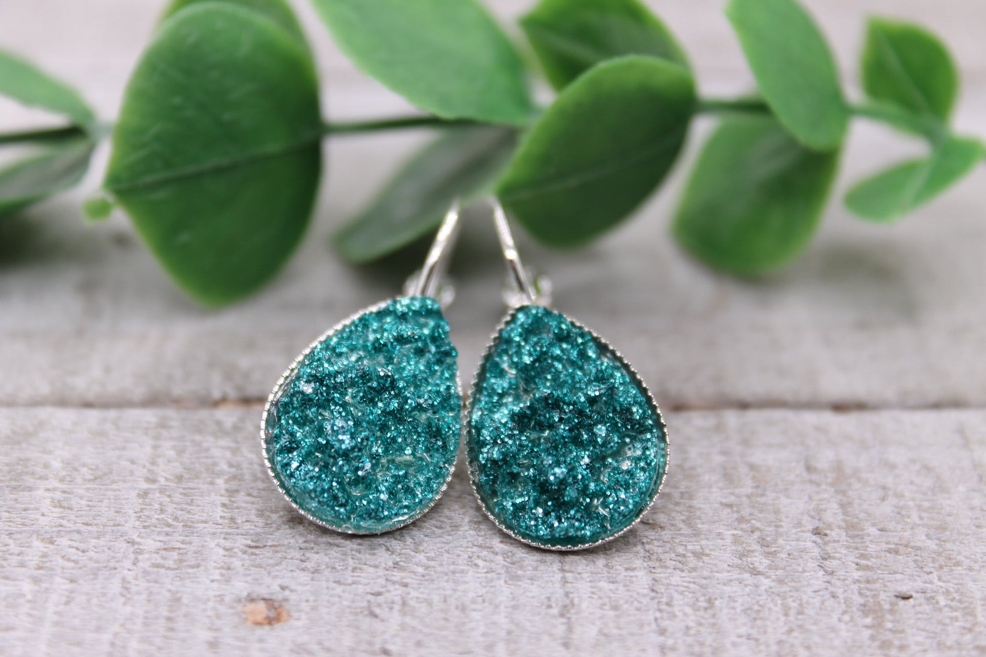 Glitz Teal || Teardrop French Lever Earrings