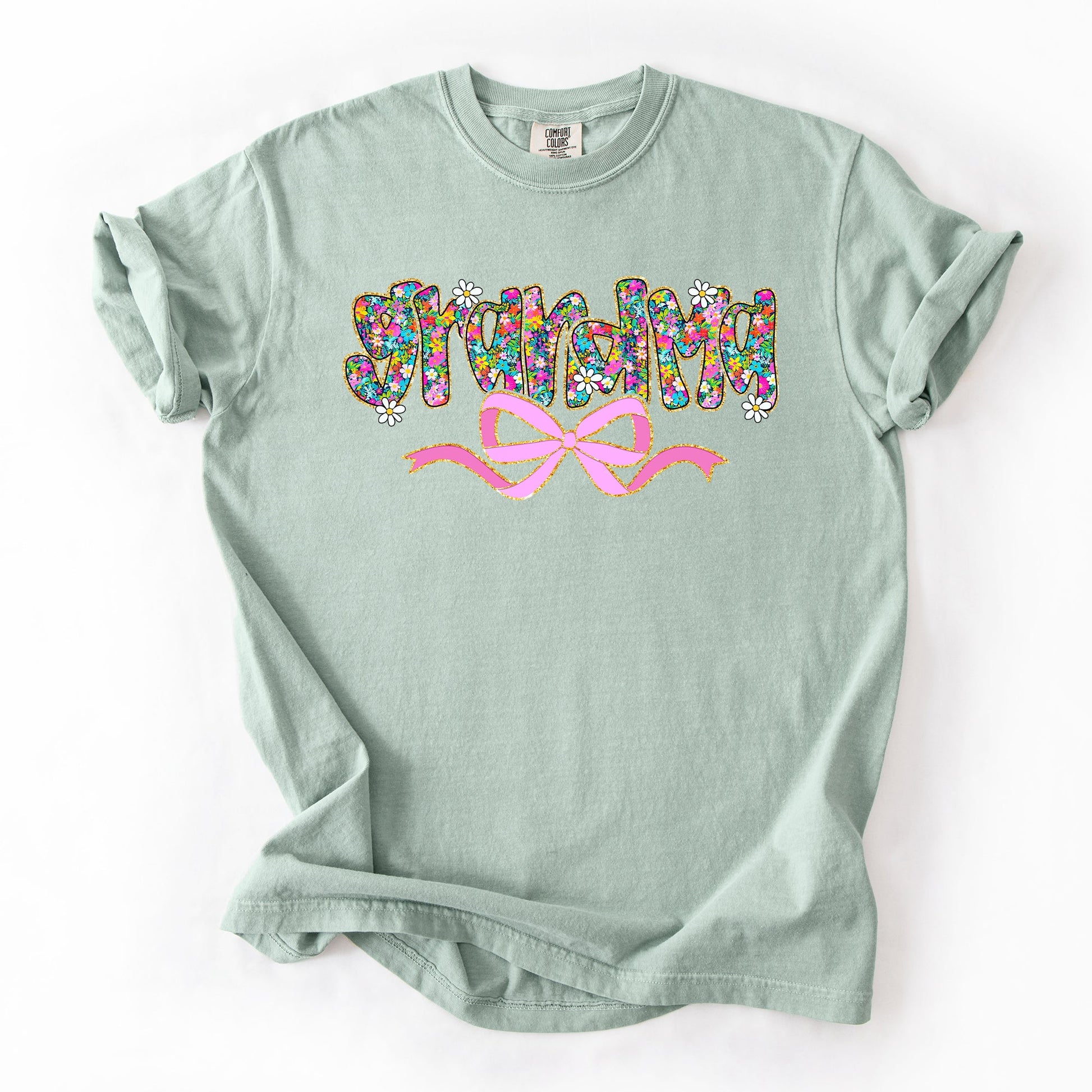 Grandma, Mother's Day, Ribbon, Bow, Floral, Flowers, Bright, Colorful, Pastels Tshirt Comfort Colors T-Shirt