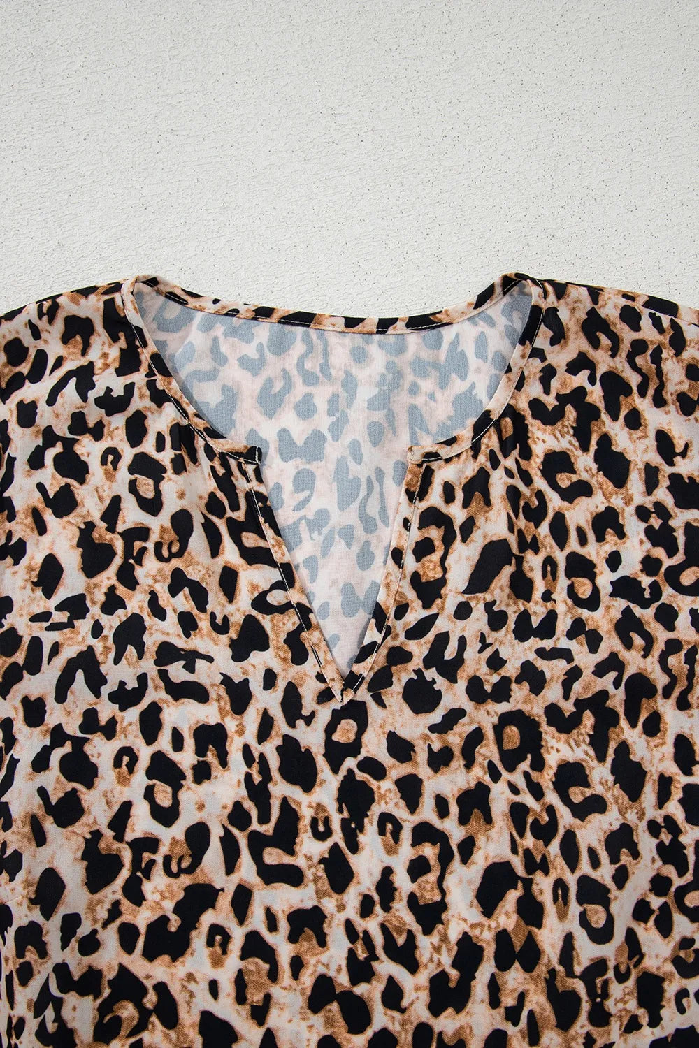 Leopard Notched Half Sleeve Blouse