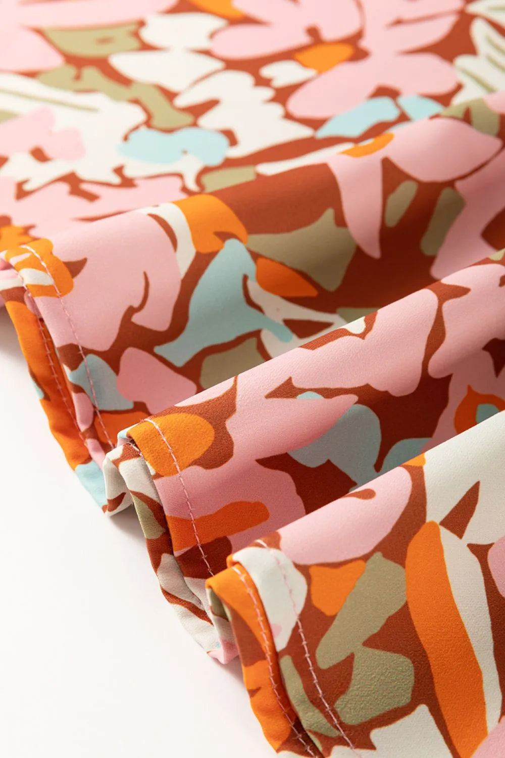 Multicolour Floral Tiered Ruffled Short Sleeve Blouse