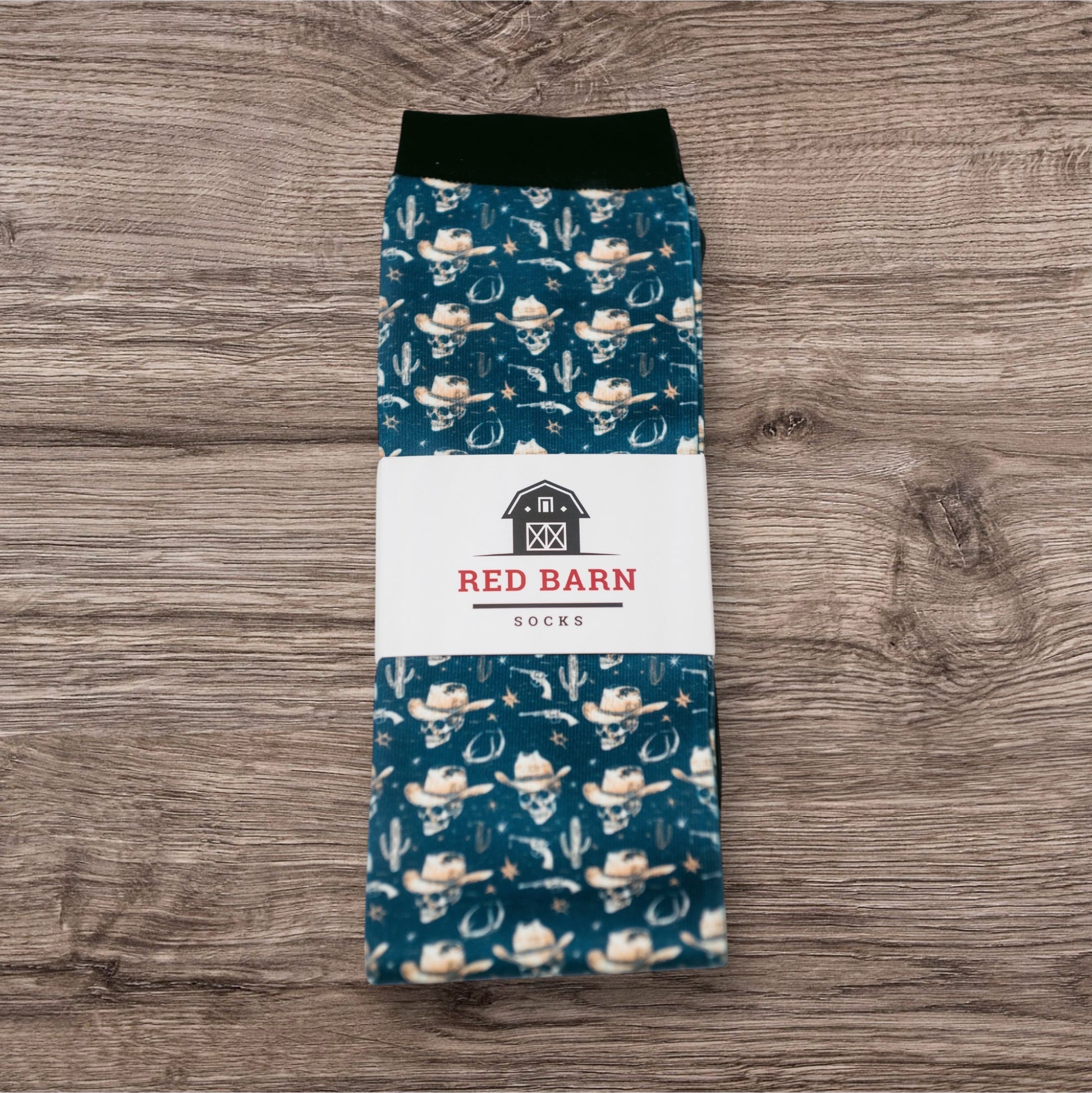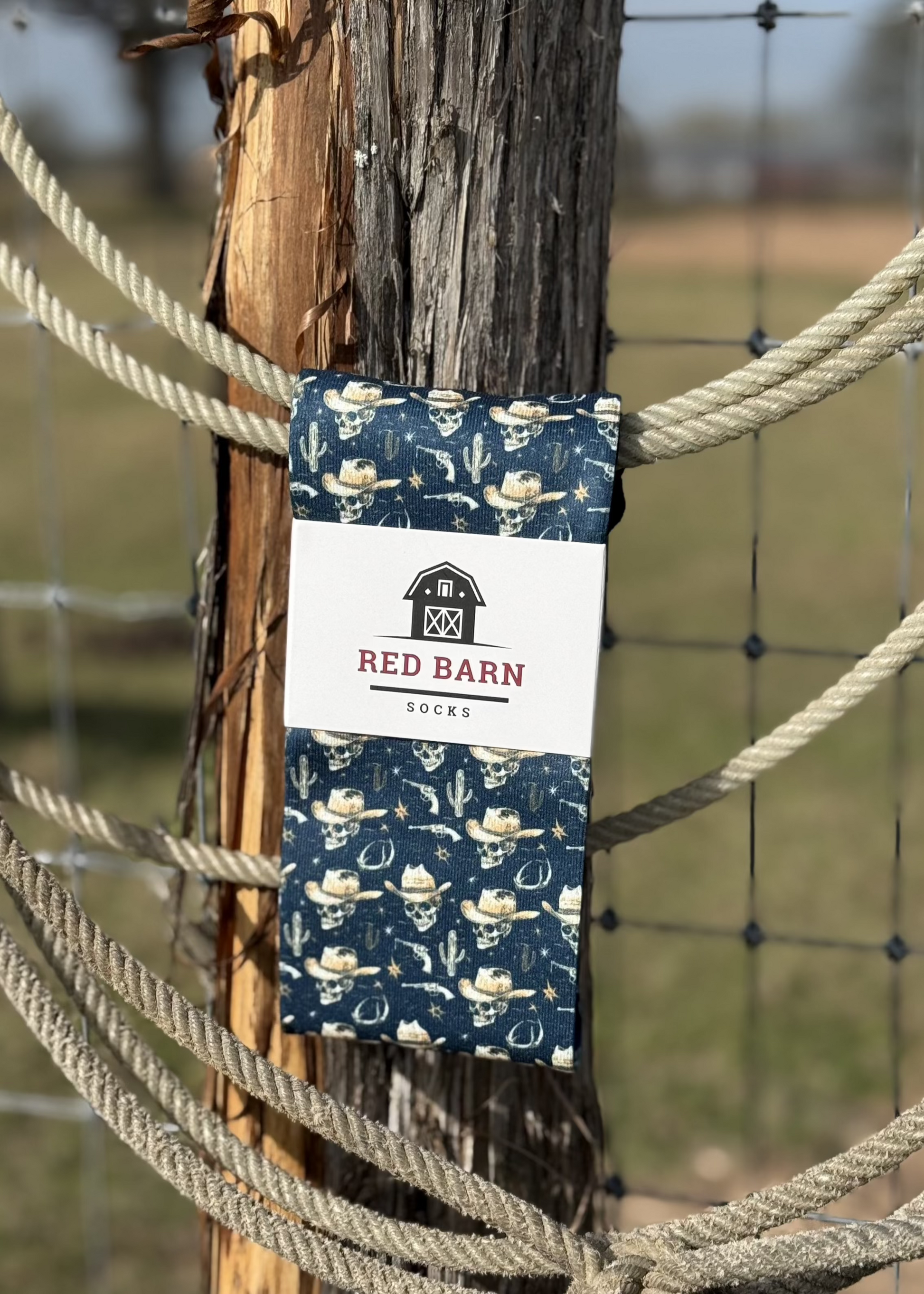 Unleash your wild side with Outlaw Wrangler - Red Barn Socks. These western-themed boot socks are designed for those who live life on the edge. Featuring a bold, design that embodies the spirit of the outlaw, they’re crafted from durable, breathable fabric to keep your feet comfortable all day long. Perfect for ranch work, riding, or adding a bit of Western flair to your outfit, these socks are a staple for any cowboy or cowgirl. Get ready to ride in style with Red Barn Socks!