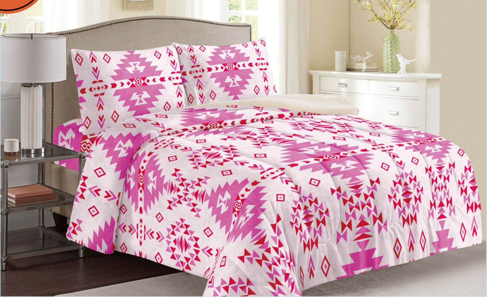 Pink Aztec Inspired 3pc Sherpa Blanket