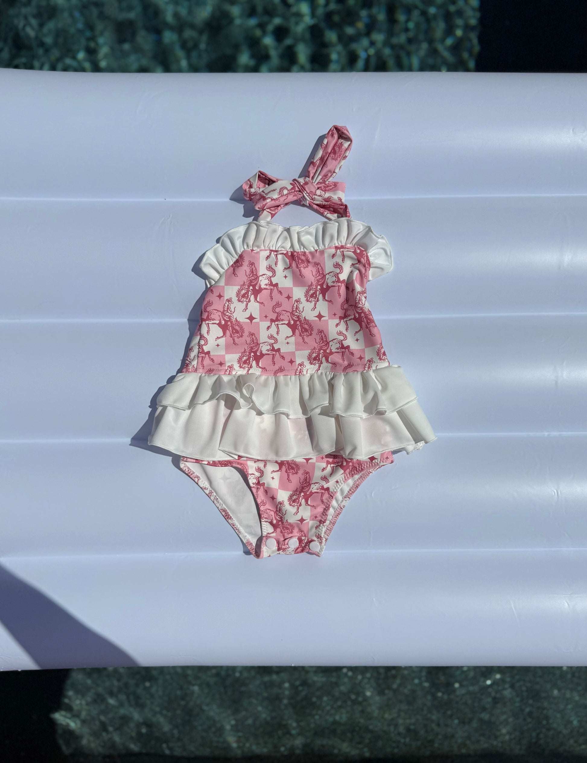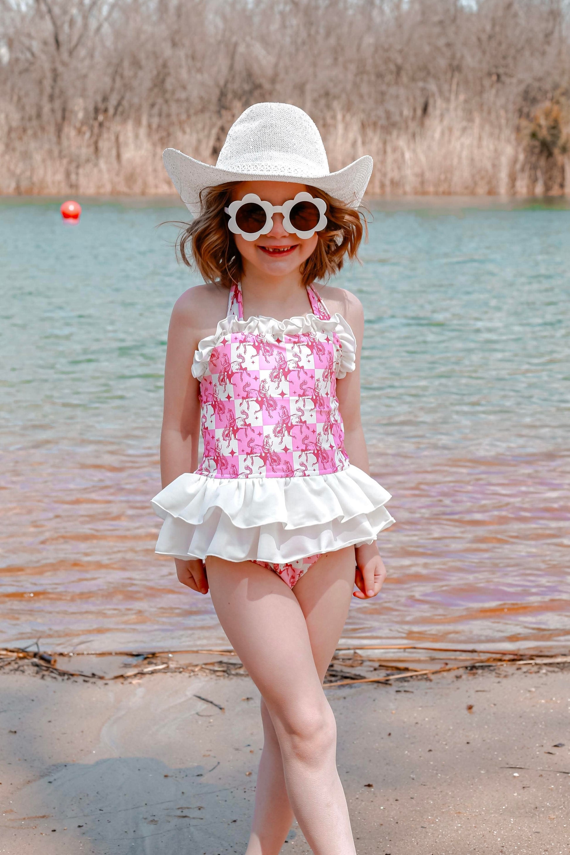 Pink Buckin’ Broncs Ruffled Swim Suit (FINAL SALE)