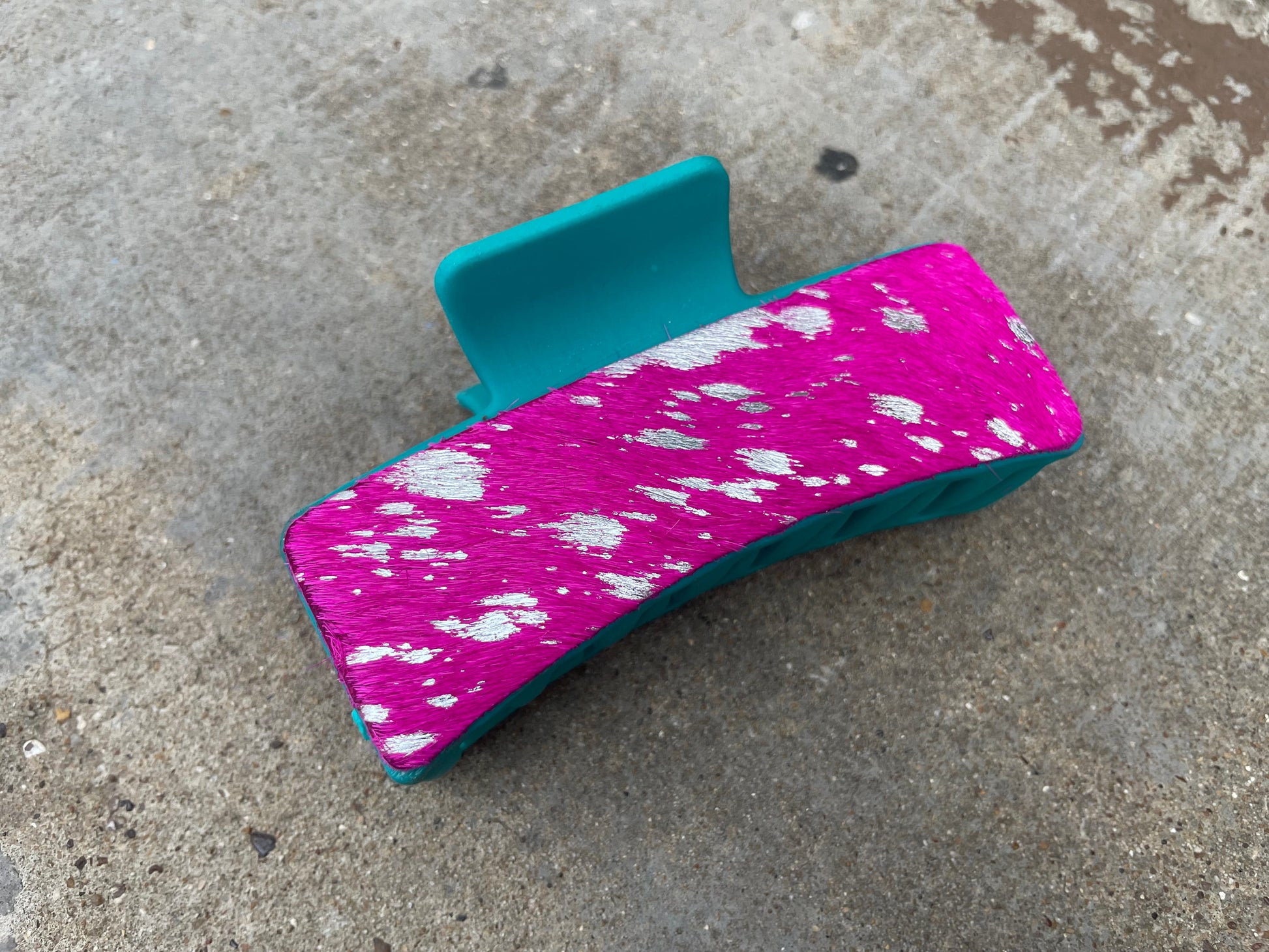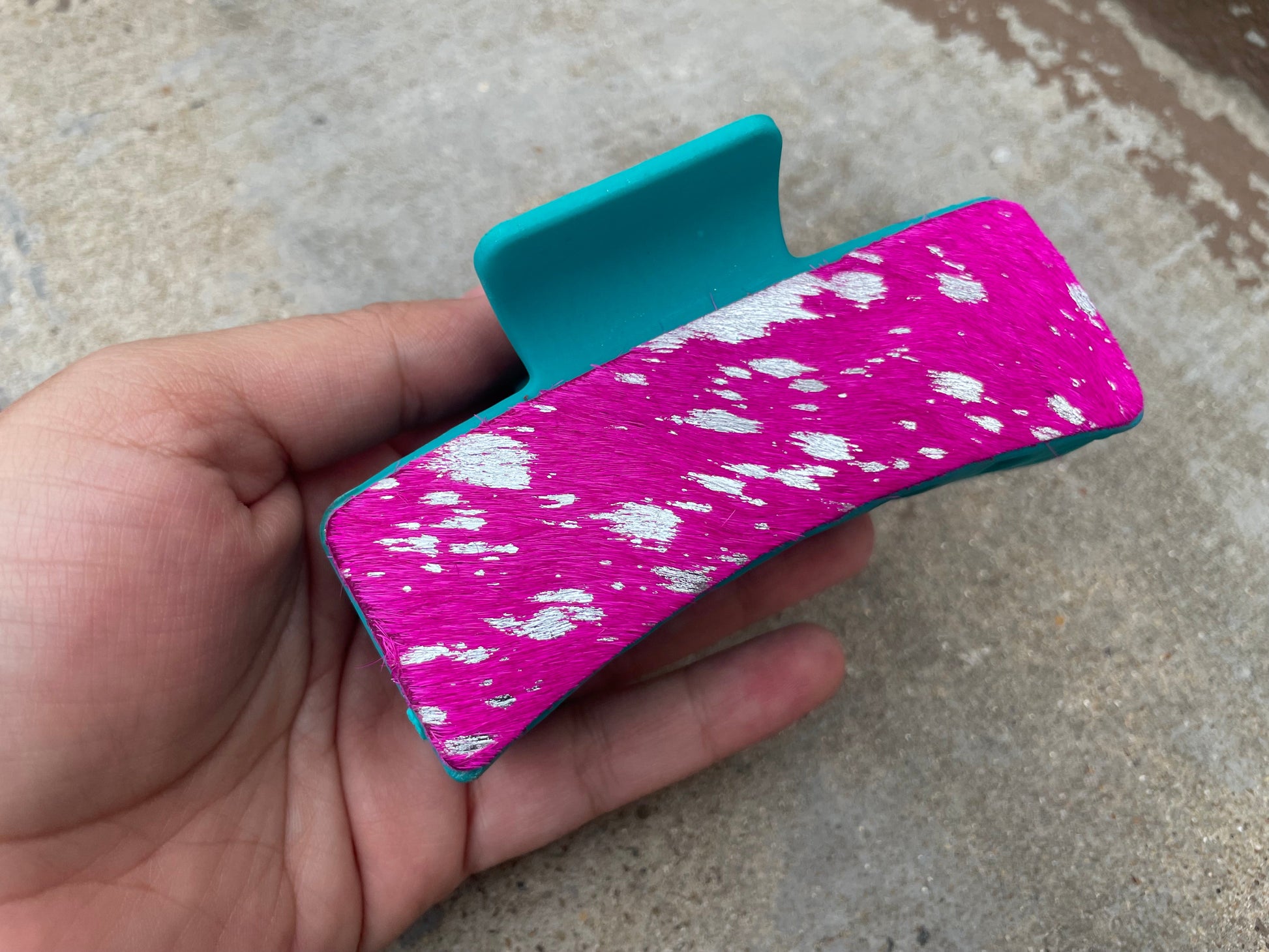 Pink Cowhide Tooled Leather Hair Claw Clips 4”