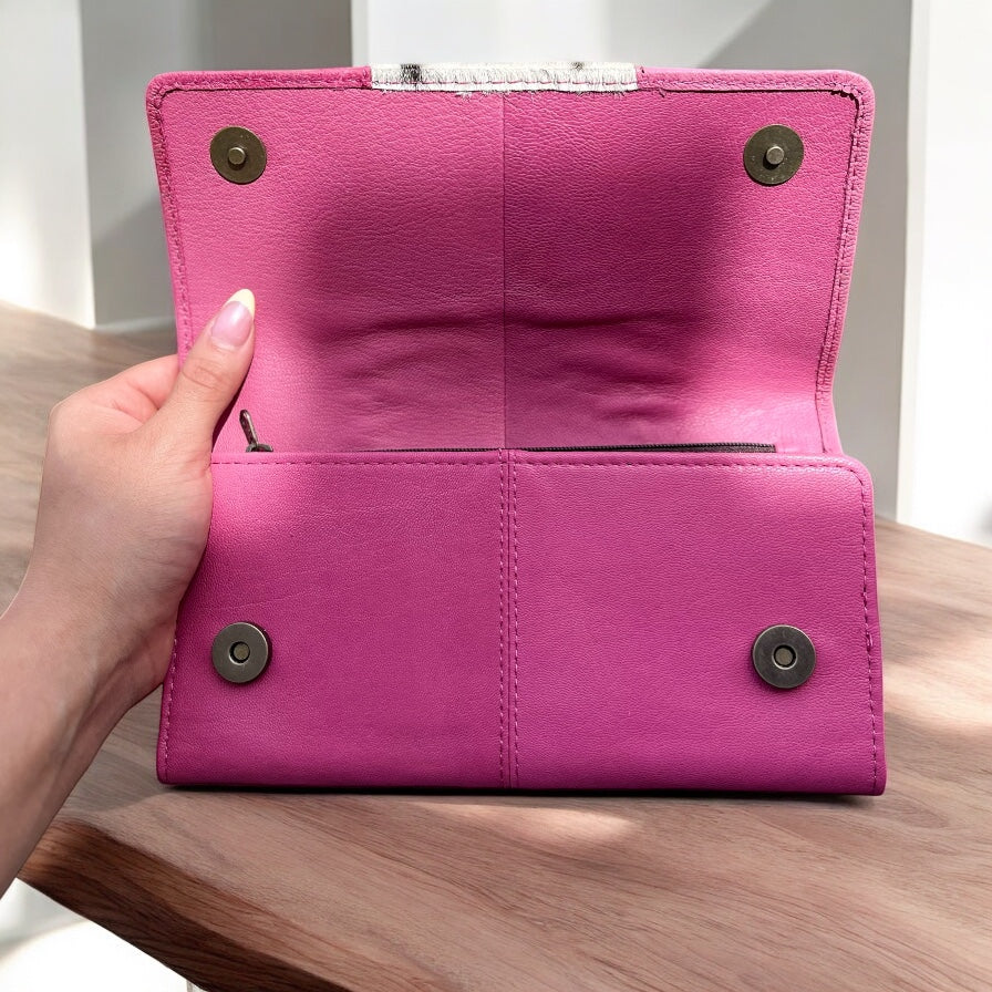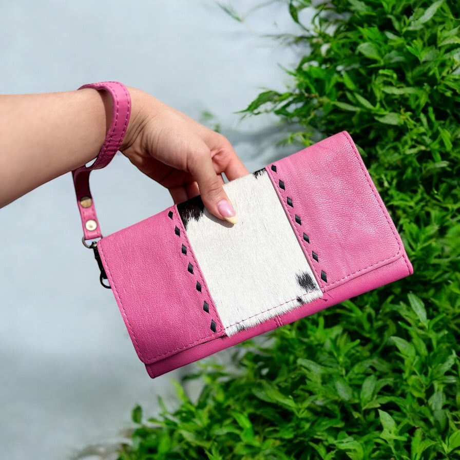 Pink cowhide wristlet