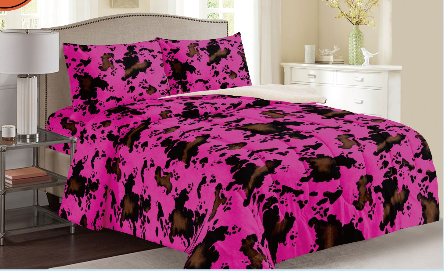 Pink Cowprint Inspired 3pc Sherpa Blanket