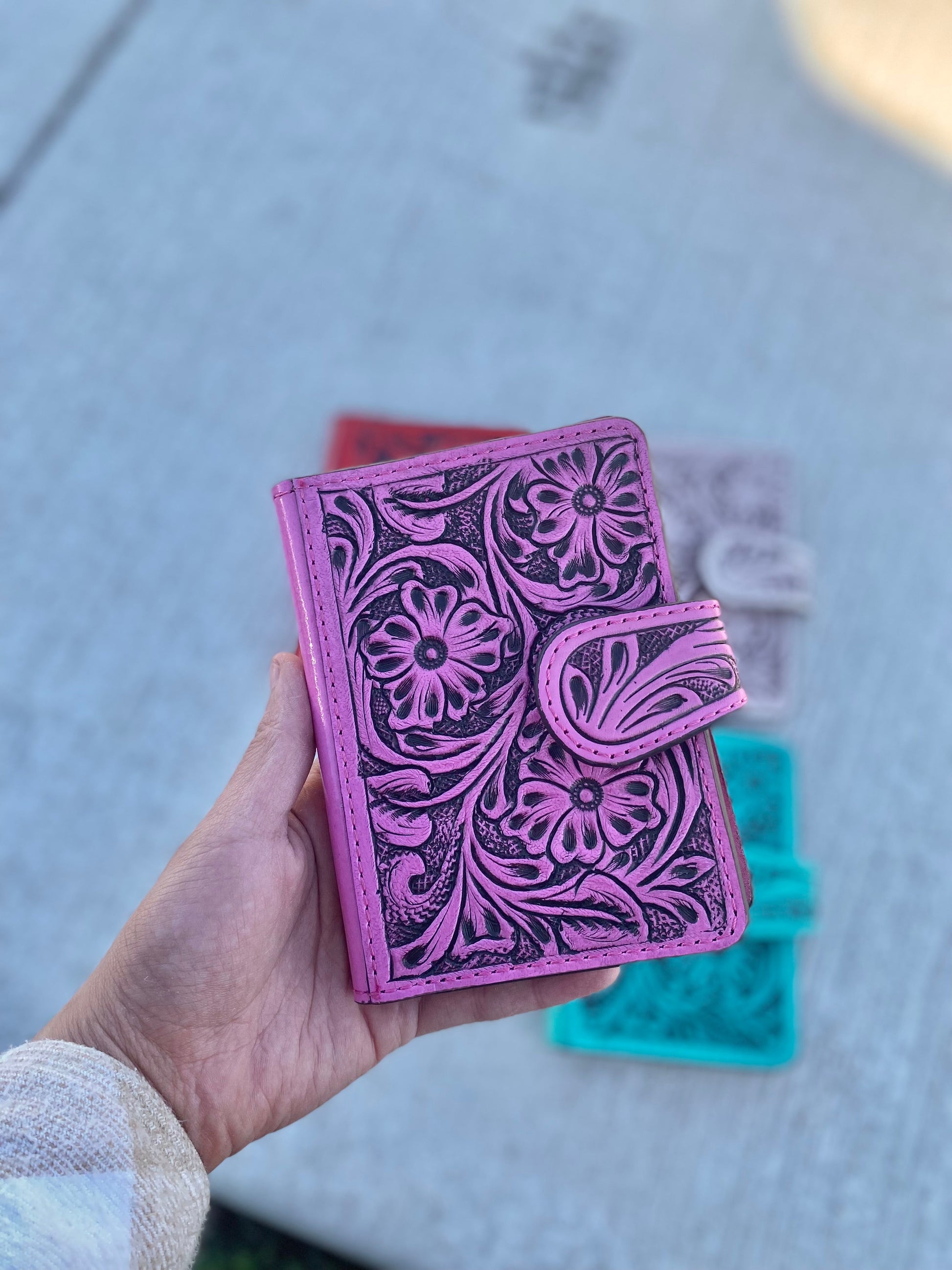 Pink Floral Tooled Leather Passport Cover