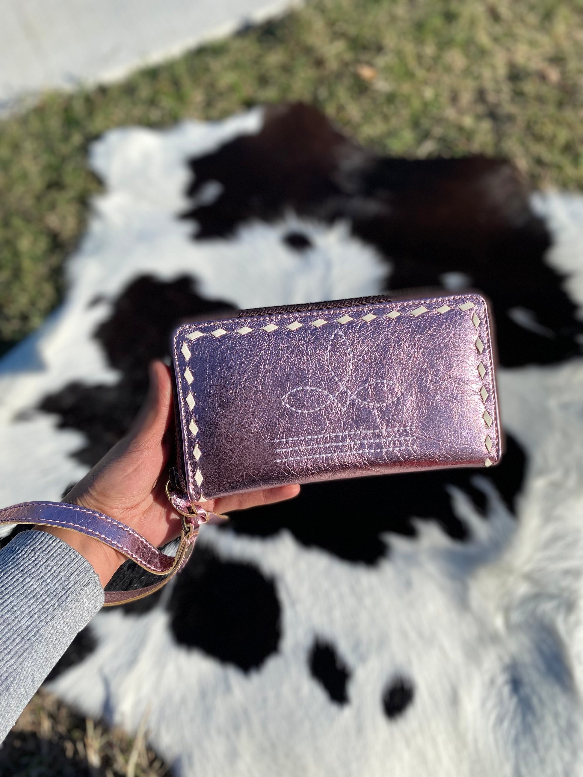 Pink Foil Leather Boot-Stitch Women’s Wallet