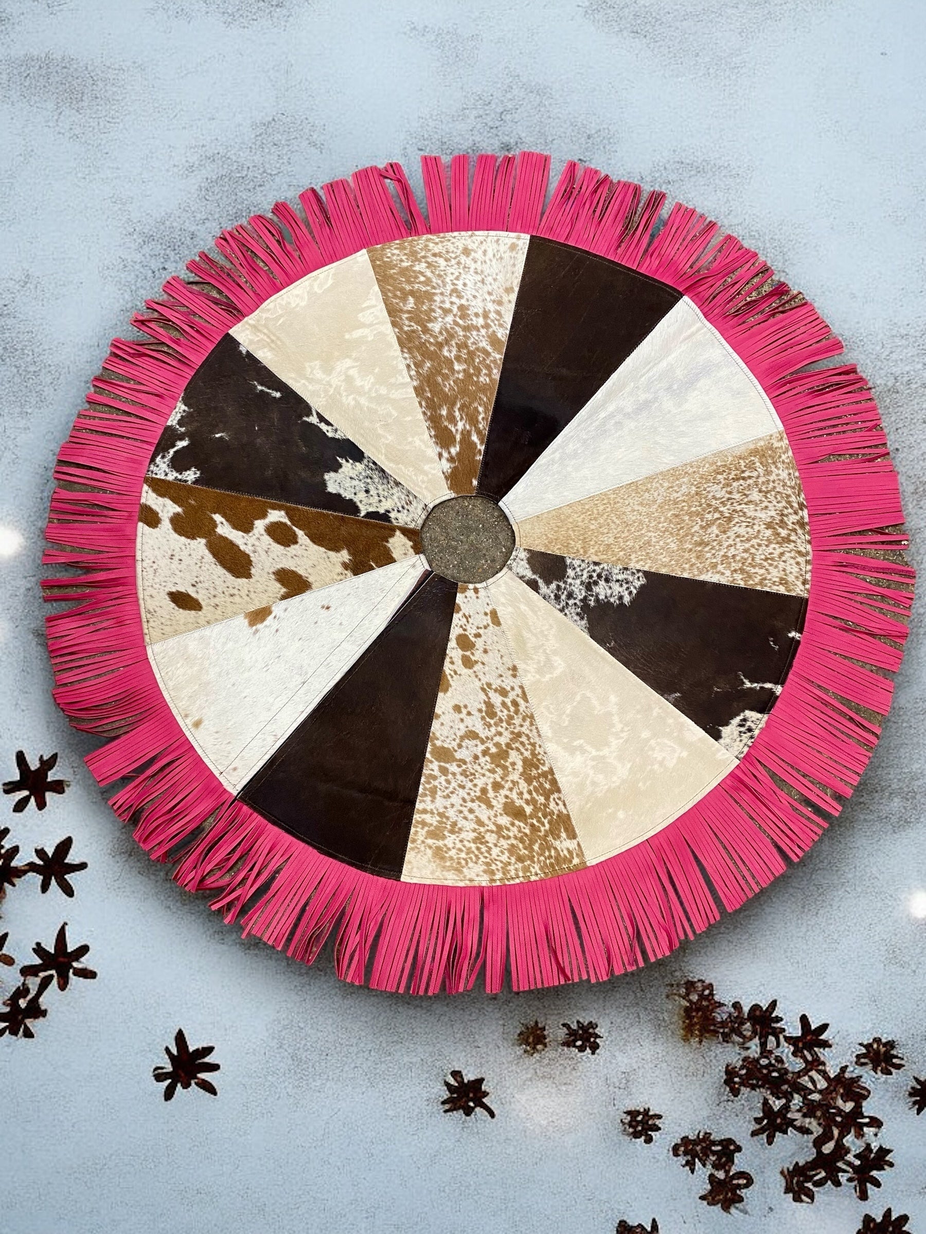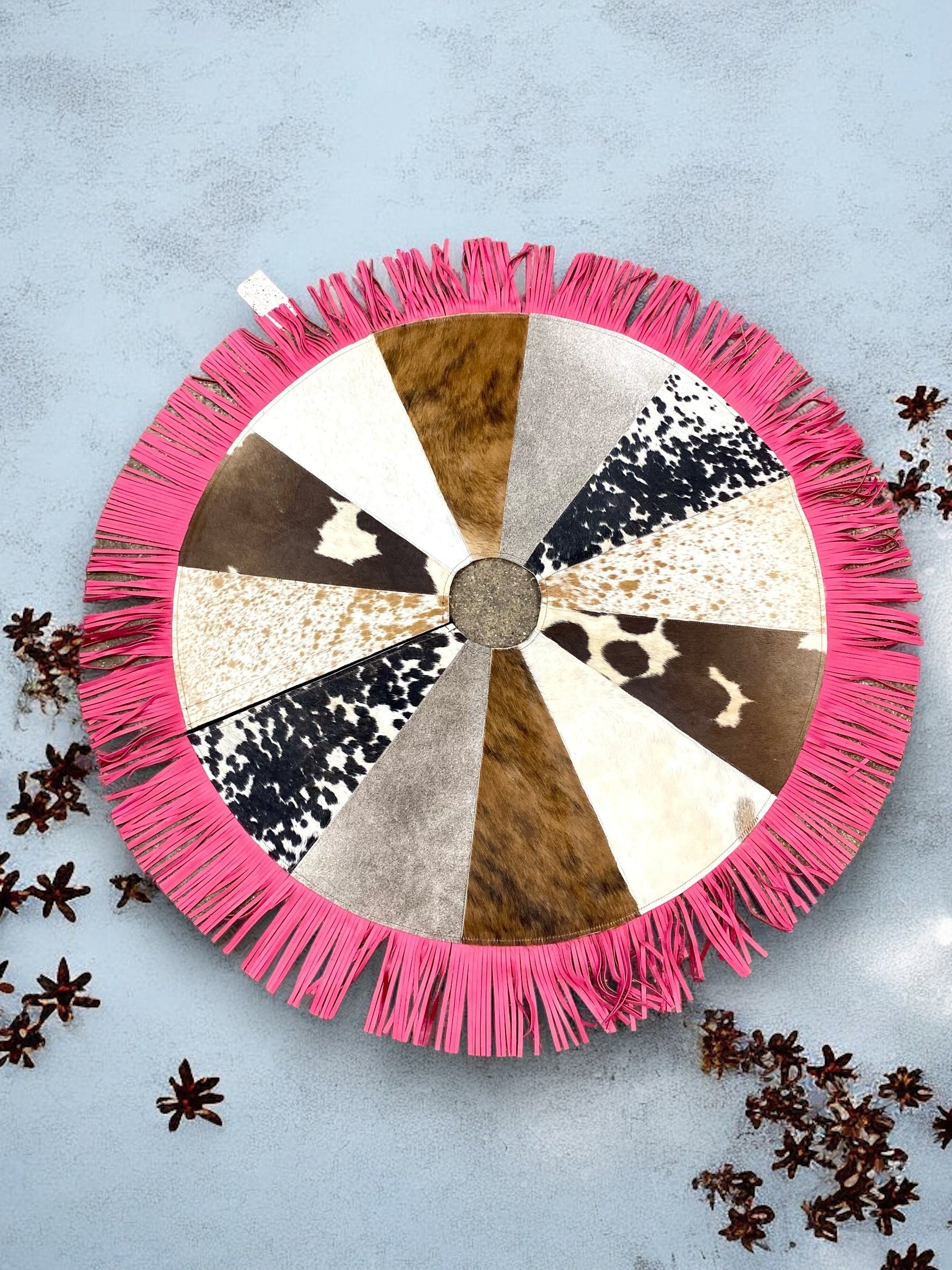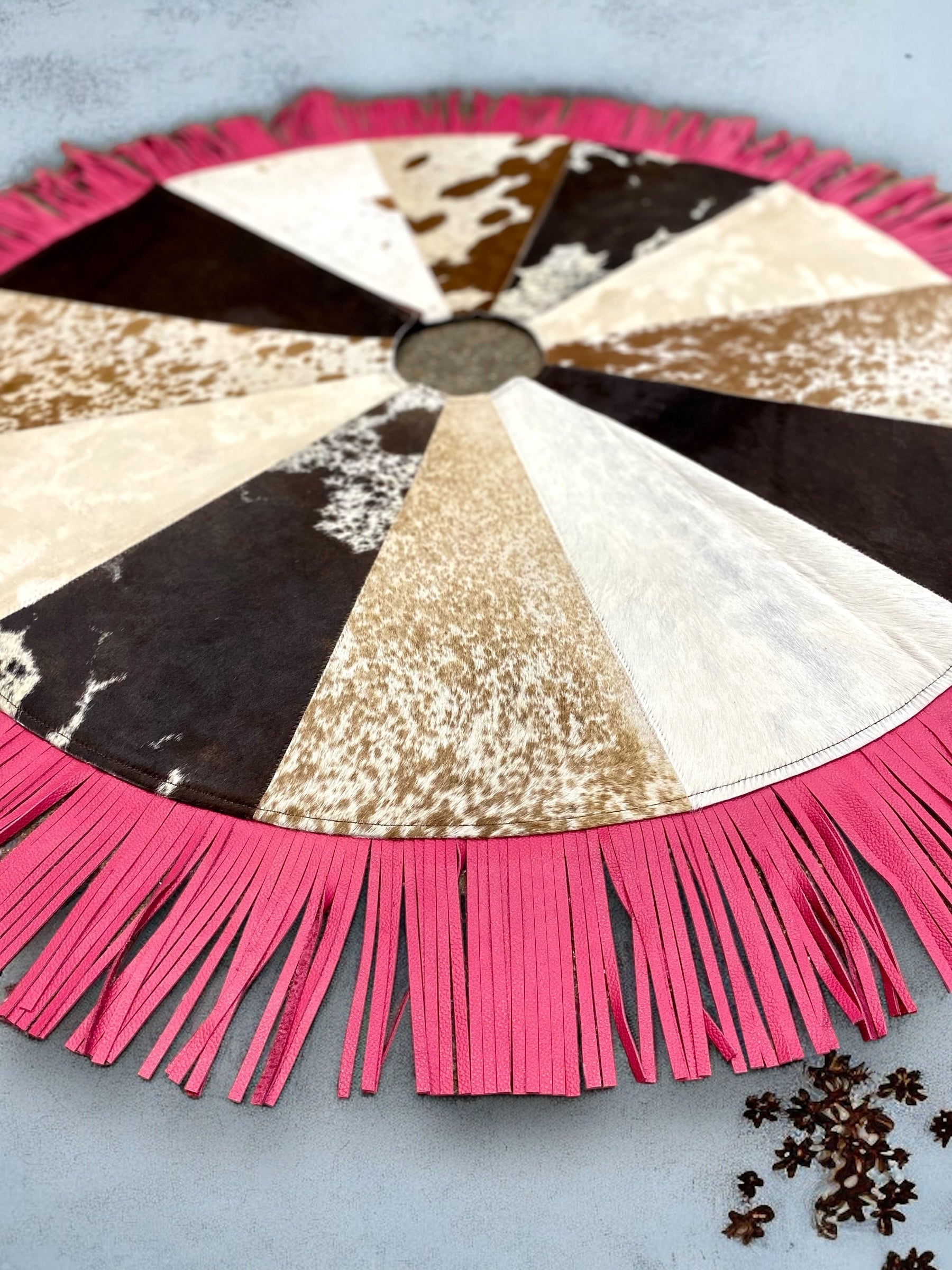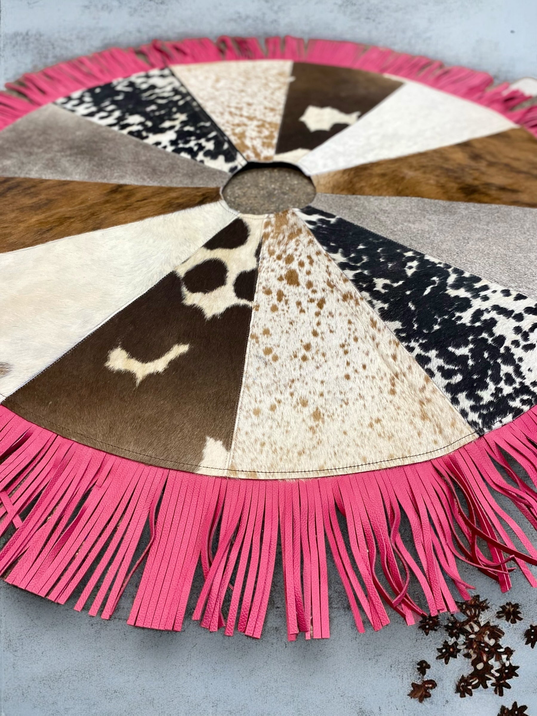 Pink Fringe Cowhide Tree Skirt 3.5 x 3.5 ft