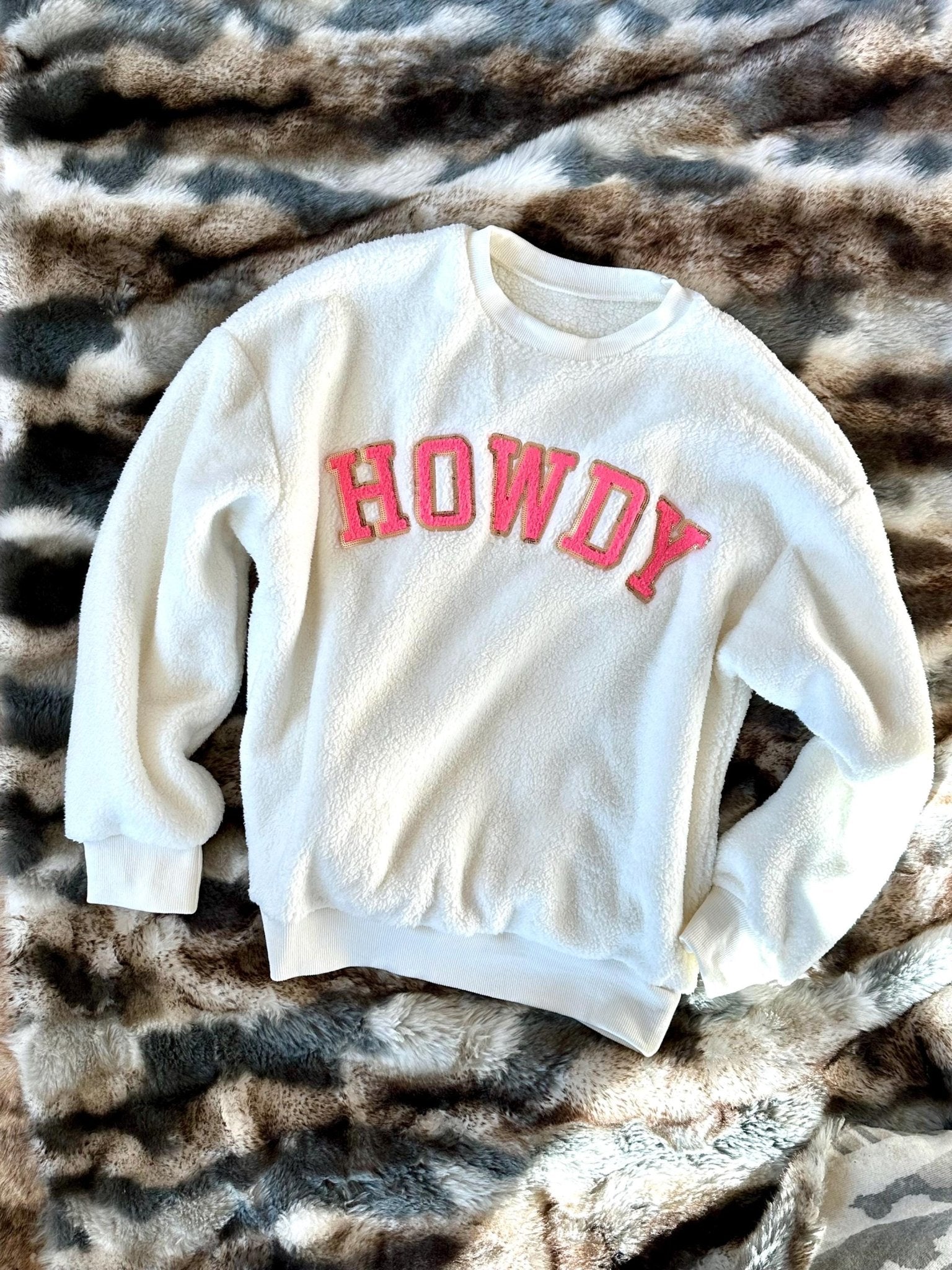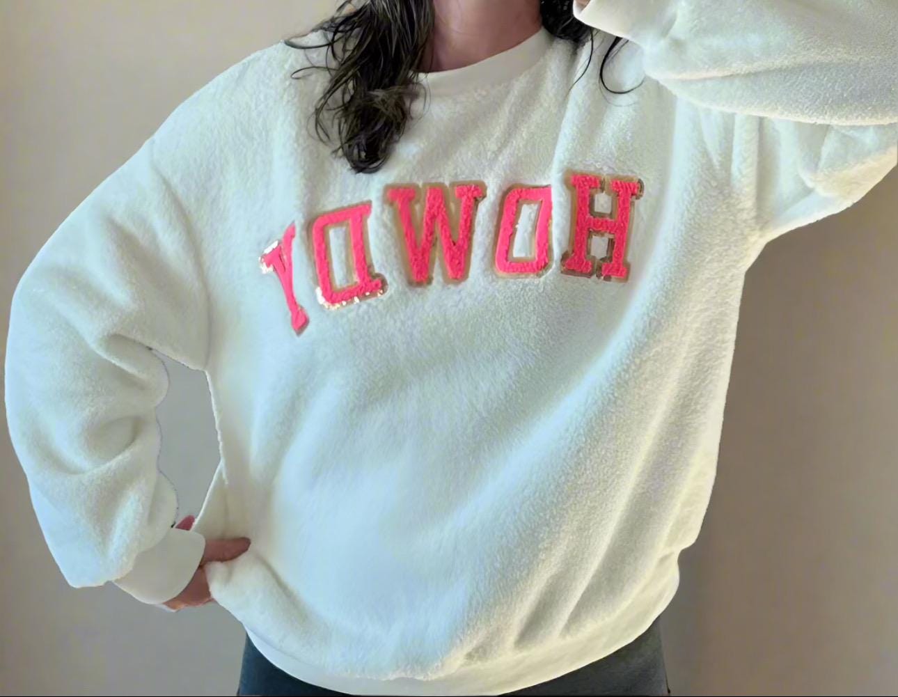 The coziest, softest, and fuzziest sweatshirt for cowgirls is here—meet the Pink Howdy Sweatshirt!