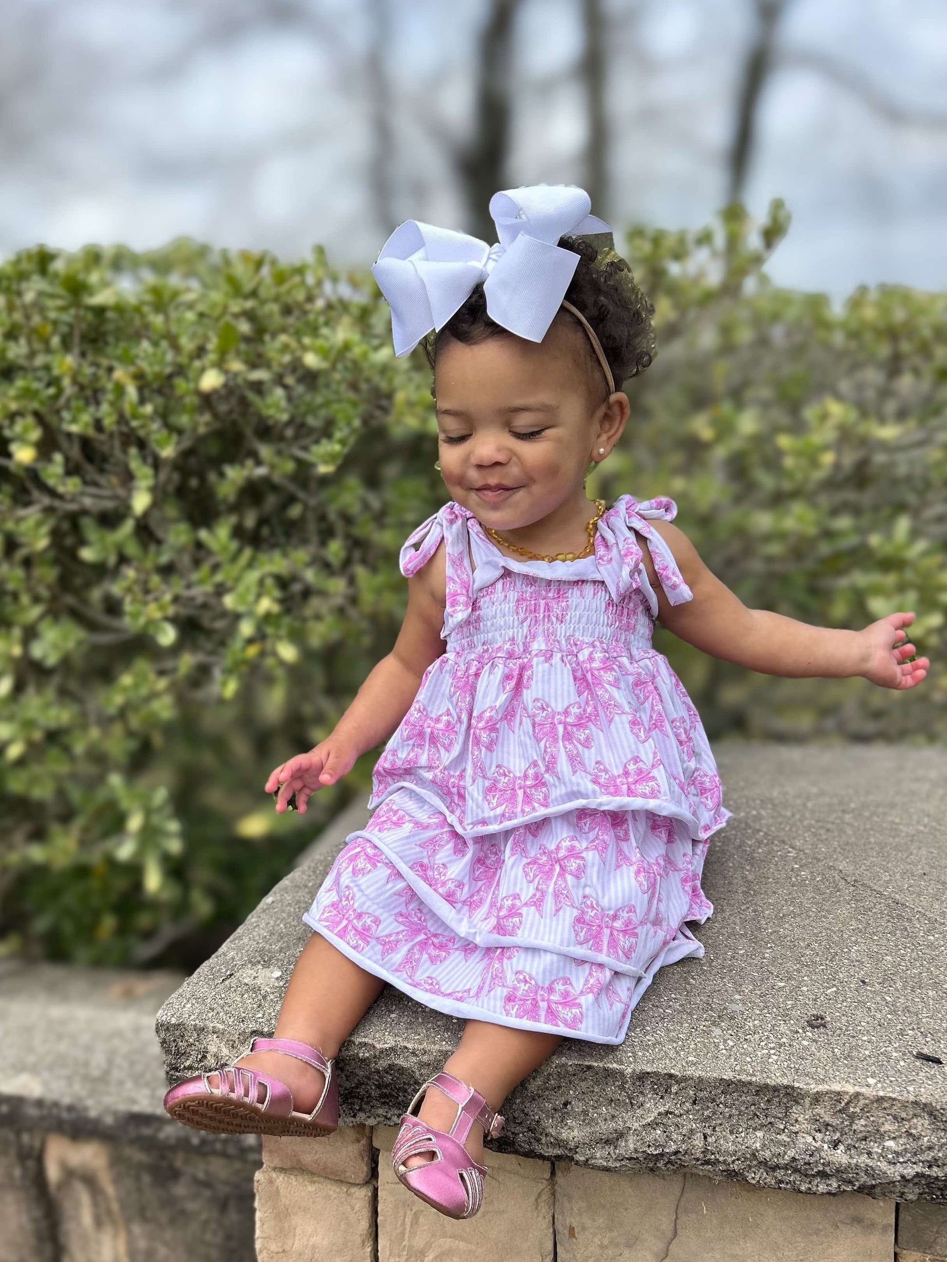 Pink Toile Bow Ruffled Dress (FINAL SALE)