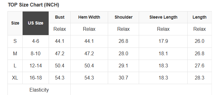 See size chart for approximate measurements.
