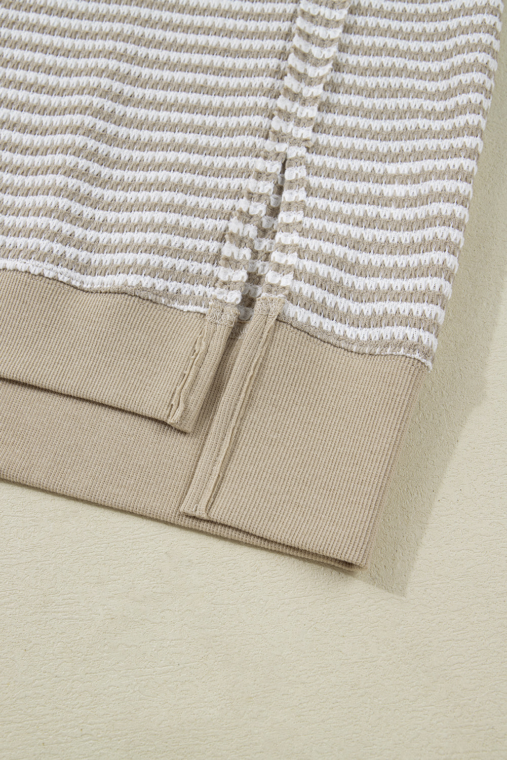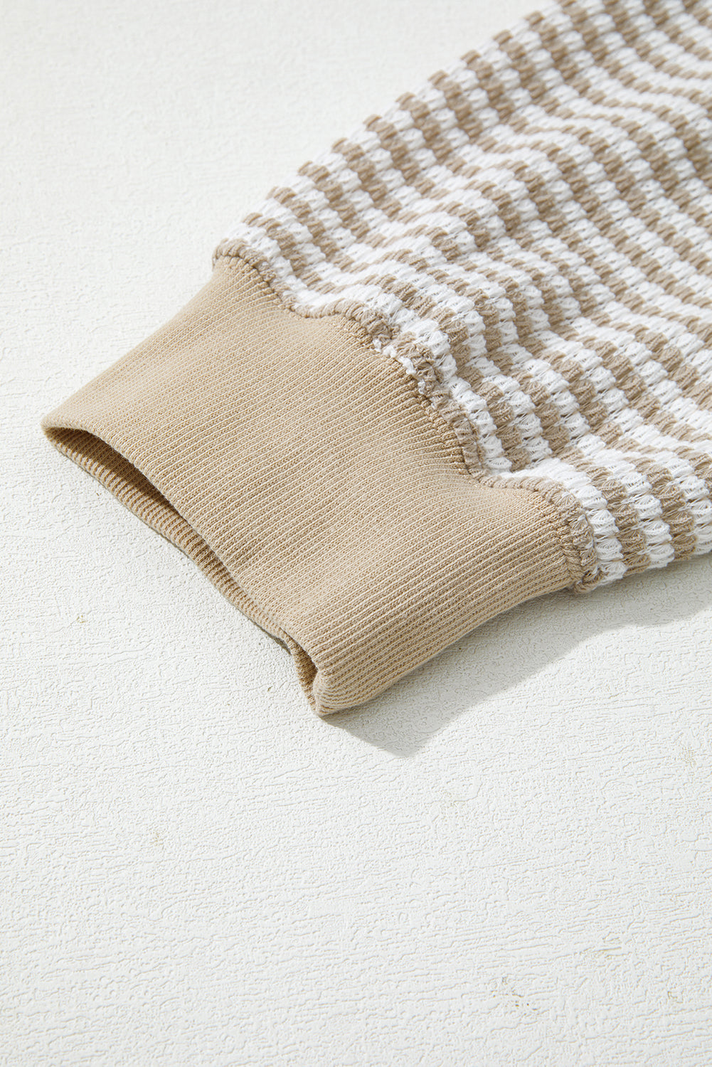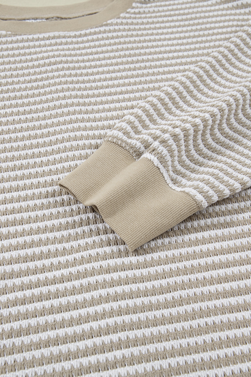 Plus Size Stripe Knit Ribbed Long Sleeve Top