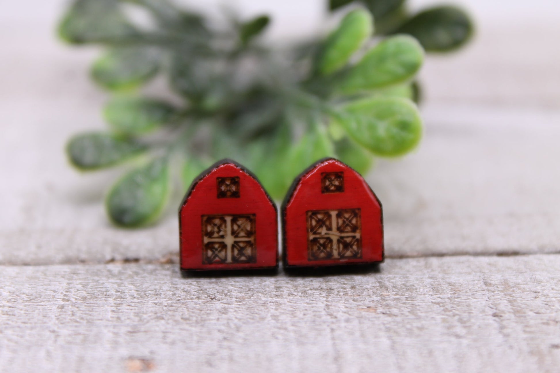Red Barns || Wood Stud Earrings || Hypoallergenic