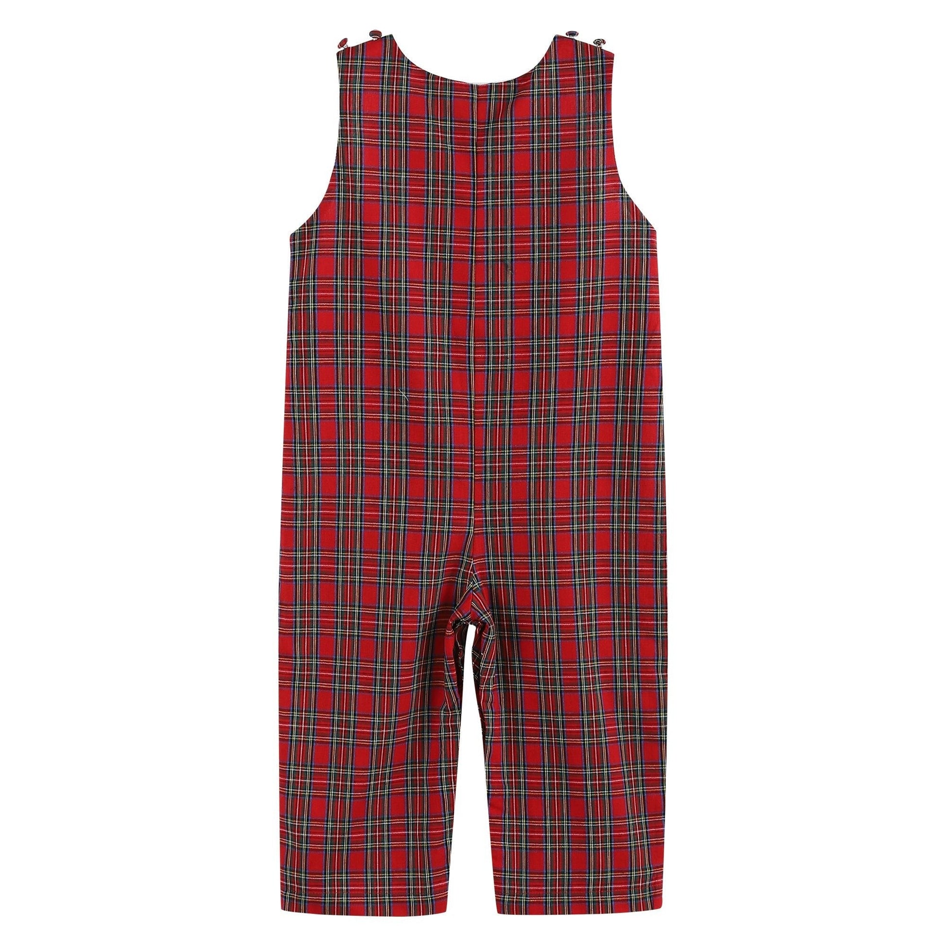 Red Christmas Plaid Santa Yoke Overalls