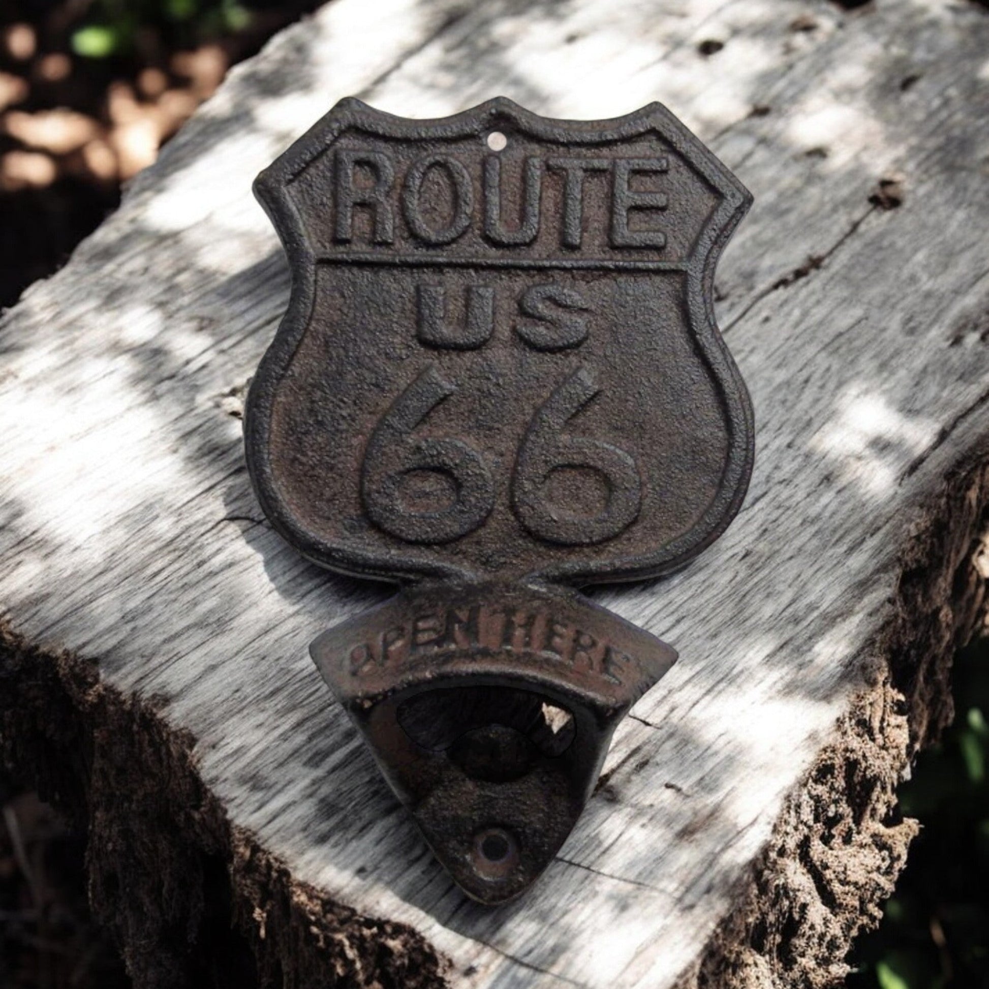 Route 66 Cast Iron Bottle Opener, Vintage Americana Bar Accessory
