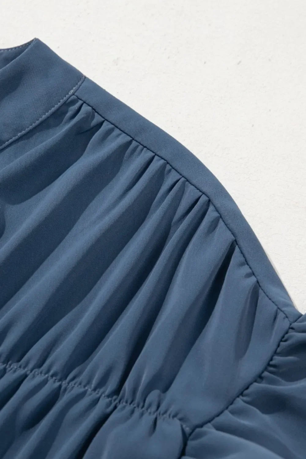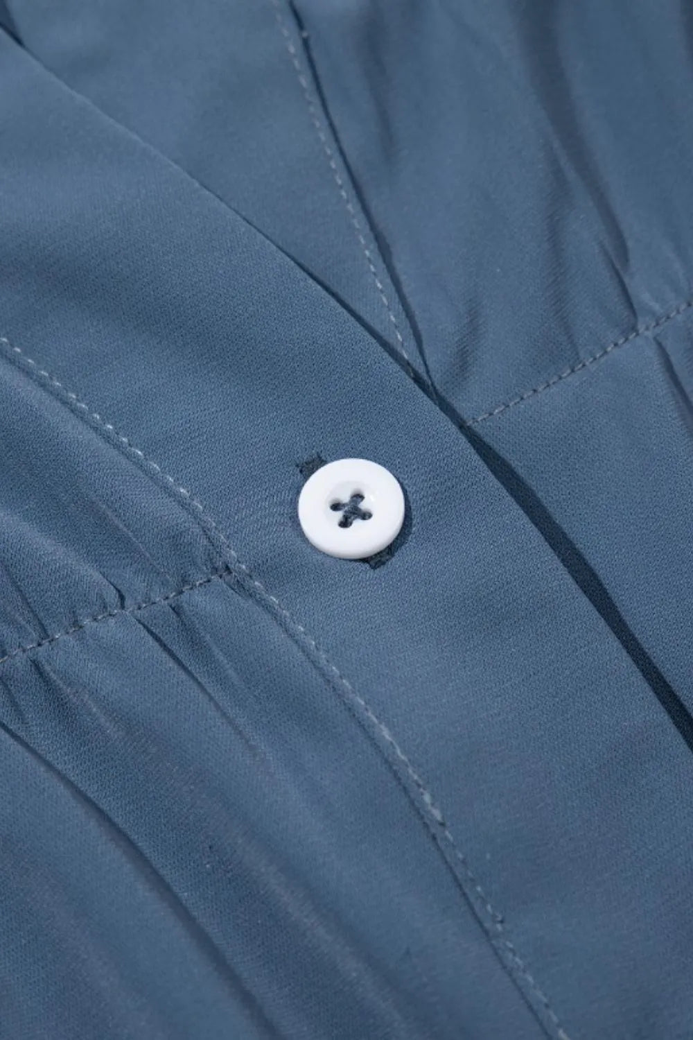 Ruffled Ruched Short Sleeve Button Down Shirt