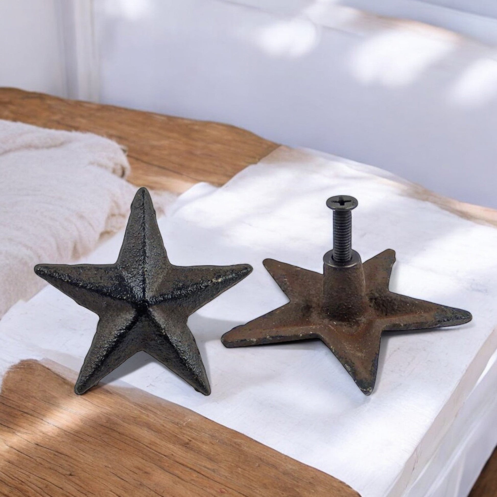 Rustic Cast Iron Star Knob, Farmhouse Cabinet & Drawer Pull (Set of 12)