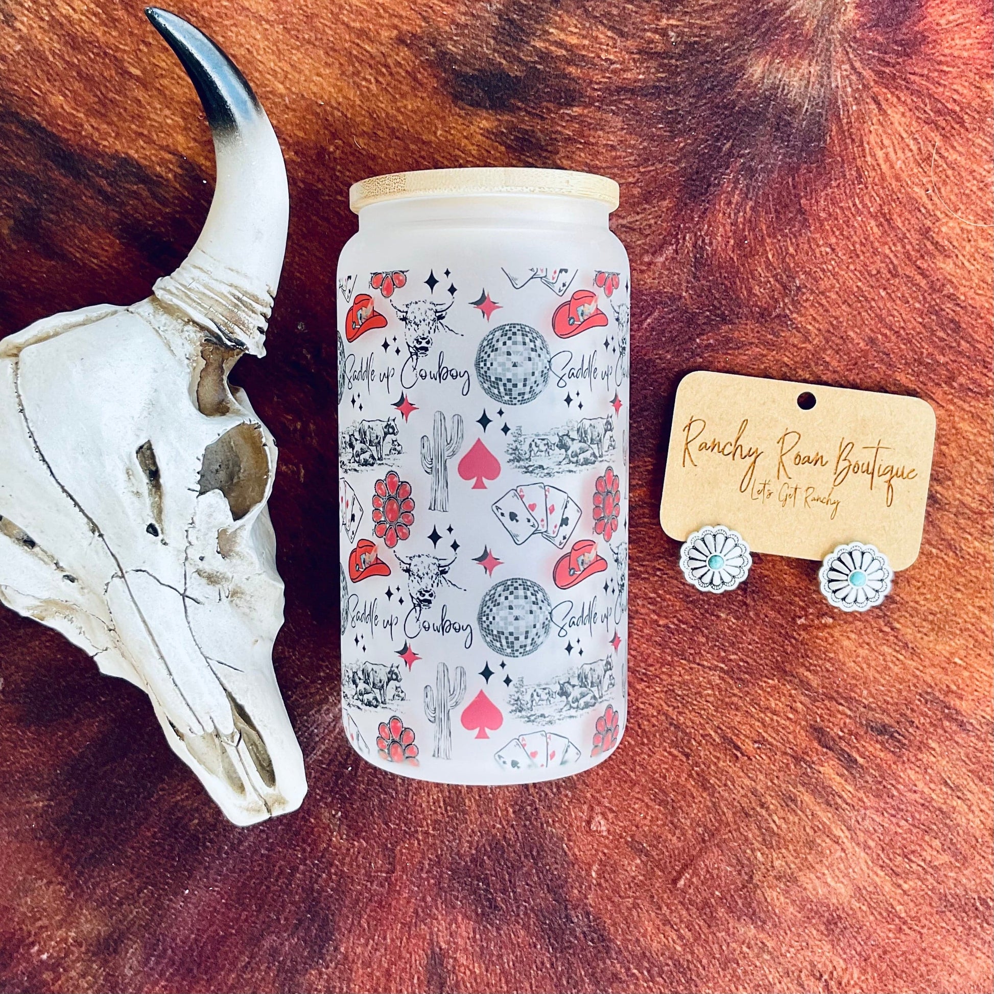 Saddle Up Cowboy Western Frosted Glass 16 oz