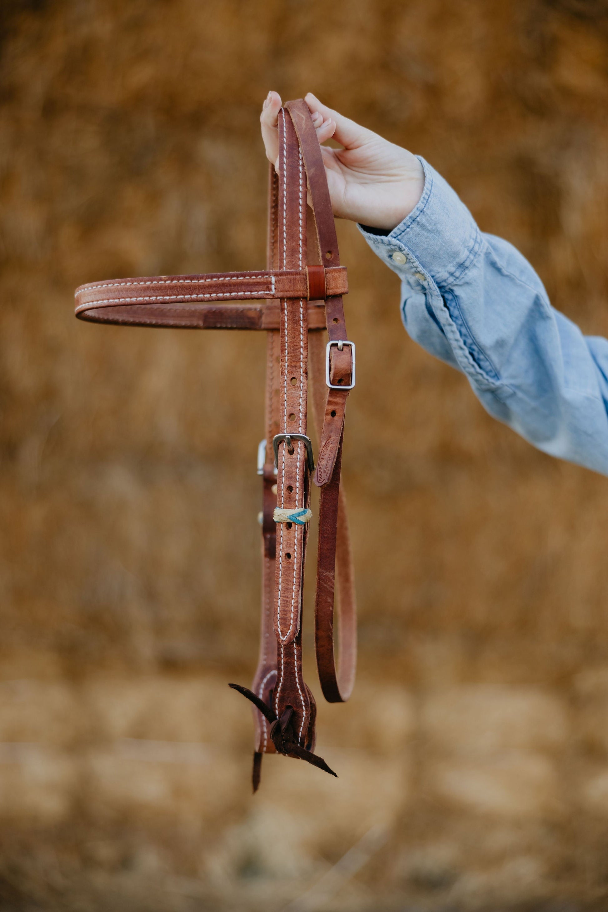 The Andrea Equine "SLO" headstall is our original working headstall. These headstalls are constructed of our signature harness leather, making them butter soft yet thick and durable like no other. They are double stitched and have hand braided rawhide keepers for a unique pop of color and style. Our "SLO" headstalls are inspired by the beautiful town of San Luis Obispo, CA, where Andrea Equine is headquartered. San Luis Obispo is a fun, yet simple and small town, and that feel is embodied in this piece.