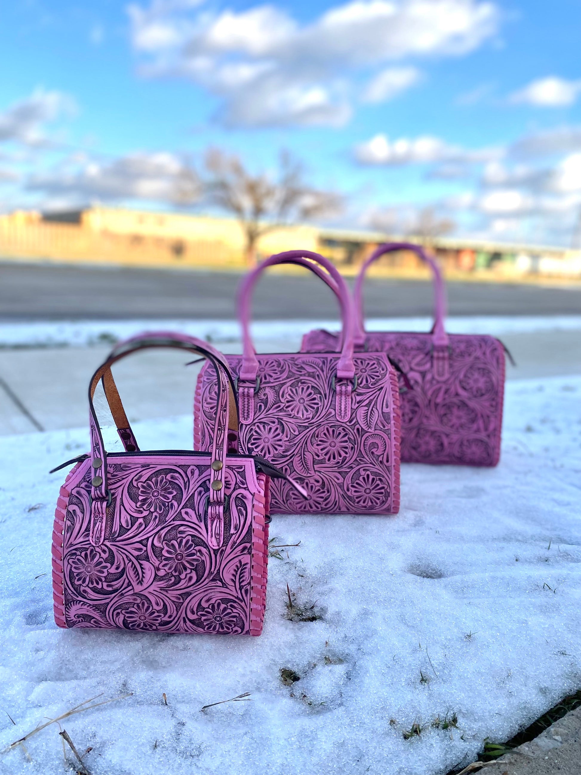 Small Pink Floral Tooled Leather Speedy Duffle Bag