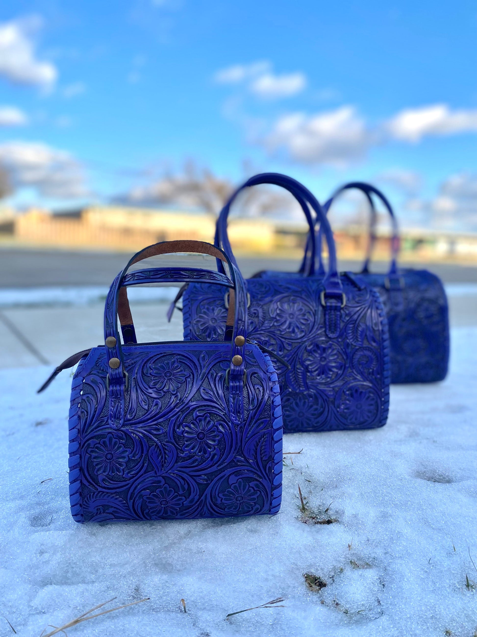 Small Purple Floral Tooled Leather Speedy Duffle Bag