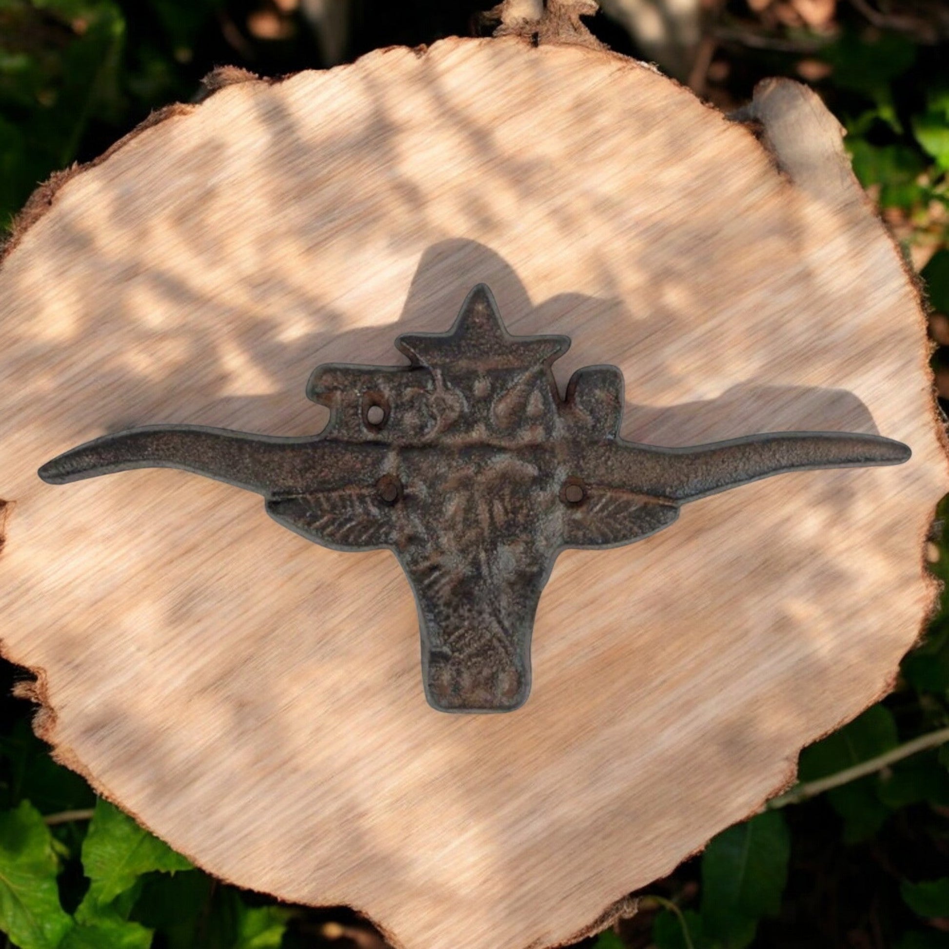 Southwestern Cast Iron Texas Longhorn Decor, Rustic Ranch Accent
