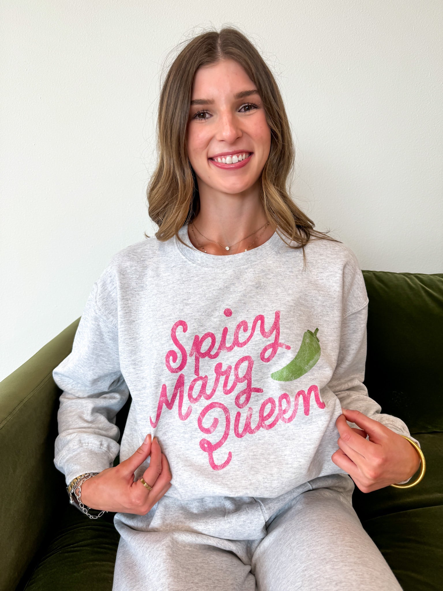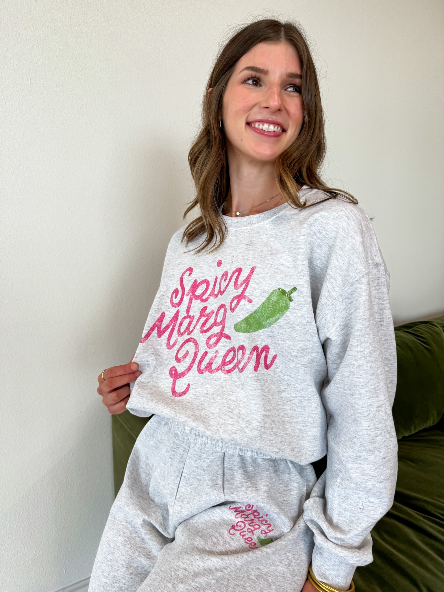 You'll be ready to sip in style in our new "Spicy Margarita Queen Sweatshirt and Sweatpants Set"! This cozy duo is perfect for all the fierce ladies who love their margaritas with a little kick.